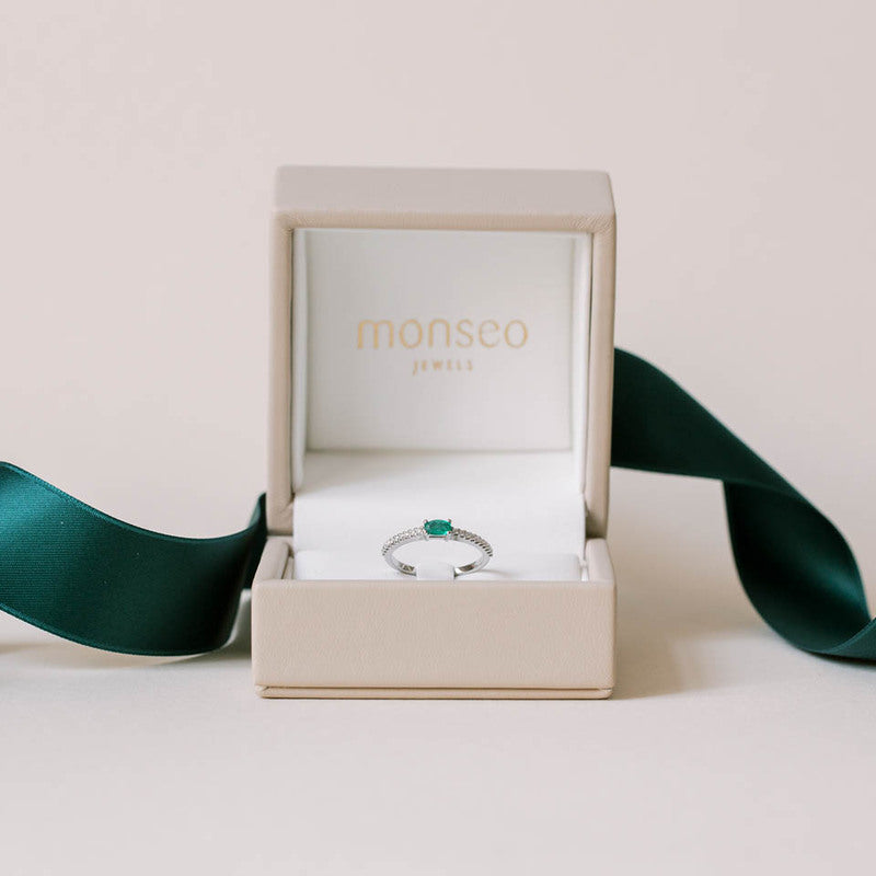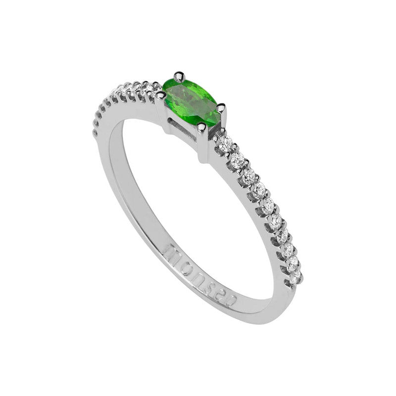 Anel Monseo Oval Ouro Branco, Esmeralda e Diamantes