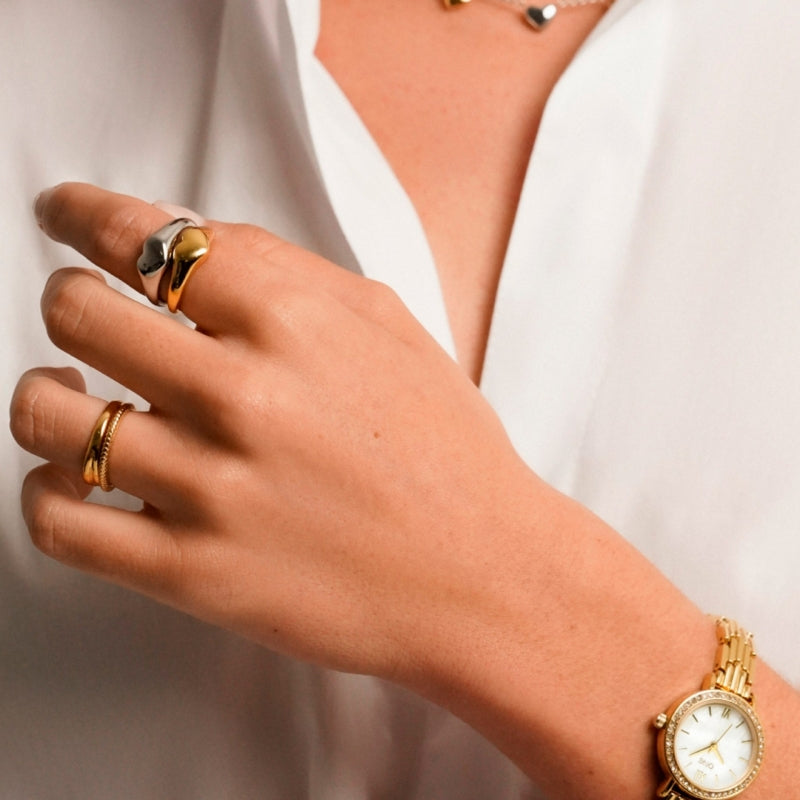 O anel Crazy Heart é um (não literal) heart-stopper! Um anel marcante, com um formato de coração 3D na parte superior e uma banda mais fina nas laterais e base do anel. Uma verdadeira statement piece totalmente em dourado com um toque de brilho característico da sua cor e coating. Ideal para uso diário e pode ser utilizado sozinho ou em combinação com outros anéis ONE seguindo a tendência de stacking. Com uma coleção tão única e significativa, não há como não se sentir contagiado pelo amor e pela alegria que cada peça transmite. É impossível ficar indiferente e deixar passar a oportunidade de adquirir uma das peças desta coleção, pois são uma declaração de amor em forma de jóia. Abrace o amor e a paixão com a Crazy Heart!