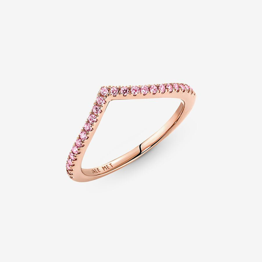 O nosso anel best-seller wishbone tem uma nova versão colorida, com este Anel Timeless Wish Sparkling Rosa. Simples, mas elegante, este anel wishbone, revestido a ouro rosa 14k, é adornado com zircónias em rosa claro e pode ser usado sozinho como um anel statement brilhante, ou maravilhosamente conjugado com outros anéis wishbone para criar um look único.