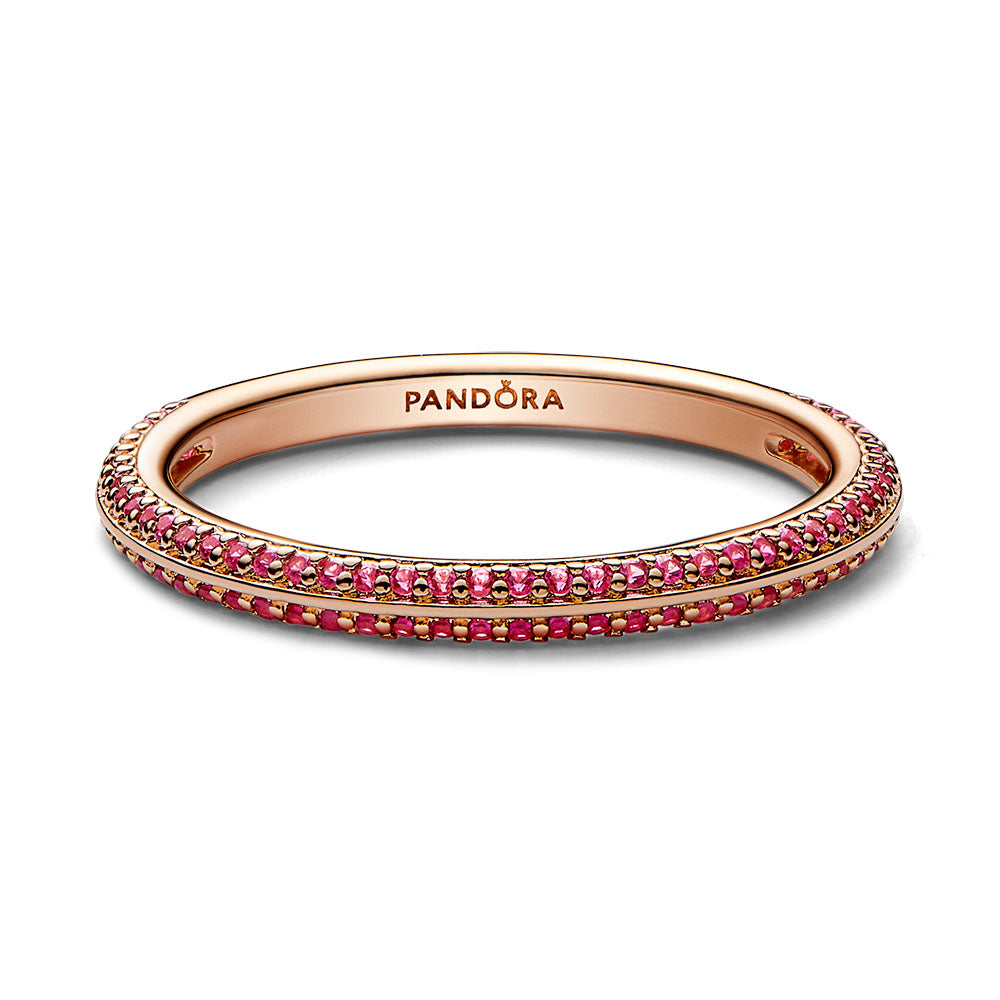 Volta a misturar a tua combinação de anéis com este Anel Pandora ME Pavé, pronto para conjugar em novas combinações de cores e materiais a condizer com o teu estado de espírito de cada dia. Este anel em liga com revestimento de ouro rosa 14k apresenta cravação pavé com 72 zircónias de corte brilhante para um look radiante. Personaliza ao máximo, ligando este anel statement aos teus outros favoritos com o Conector de Styling para Dois Anéis Pandora ME, e acrescentando até dois mini-pendentes que exprimam a tua essência. Mistura e conjuga cores e pedras para intensificar o brilho do teu conjunto. Pronta para reinventar o teu conjunto duplo de anéis? Segue estes passos simples para garantir que as tuas duas peças preferidas se separam com facilidade, para que possas reinventar o teu look vezes sem conta. Seja qual for o par de anéis que estejas a usar, certifica-te de que a parte de abrir do Conector para Dois Anéis fica virada para cima e desliza apenas um dos dois anéis para o lado oposto. A seguir, retira quaisquer pendentes pela abertura, um de cada vez, antes de retirar o outro anel. Agora já podes mudar tudo novamente!