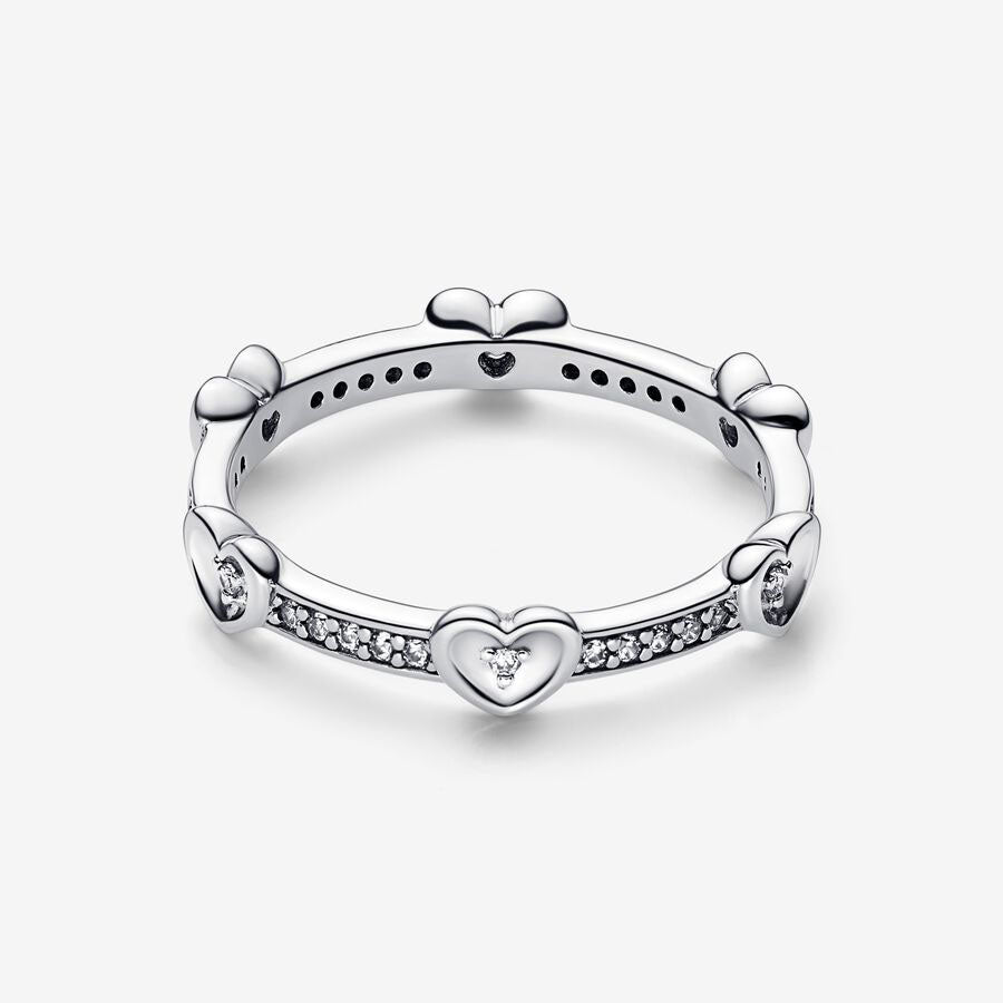 Amor eterno Com acabamento manual em prata, o nosso Anel Radiant Sparkling Hearts apresenta uma fila interminável de corações elevados, cada um com uma zircónia transparente de corte brilhante e ligados por pavé cintilante. Um presente repleto de significado para a sua mais-que-tudo