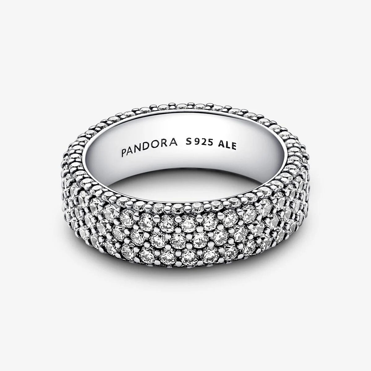 Maximize o seu brilho com o Anel Pandora Timeless Pavé Triplo, com acabamento manual. Em prata 925, este anel destaca-se com três filas de zircónias transparentes à volta do centro e uma fila virada para fora em torno de cada lado, criando um perfil quadrado ligeiramente arredondado que brilha a partir de cada ângulo. Use-o sozinho ou combinado com outros anéis pavé Timeless para criar um look tão vibrante quanto desejar.