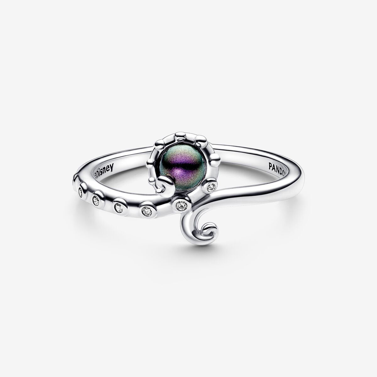 Canalize os cantos mais profundos do oceano com o nosso anel Ursula Disney da Pequena Sereia. Inspirado no poder misterioso da Ursula, este anel cativa com uma pérola artificial lacada a púrpura luminoso, cravada entre dois tentáculos de prata. Pedras cintilantes e microesferas ao longo de um lado do aro do anel captam a luz, como o sol que se reflete nas ondas.