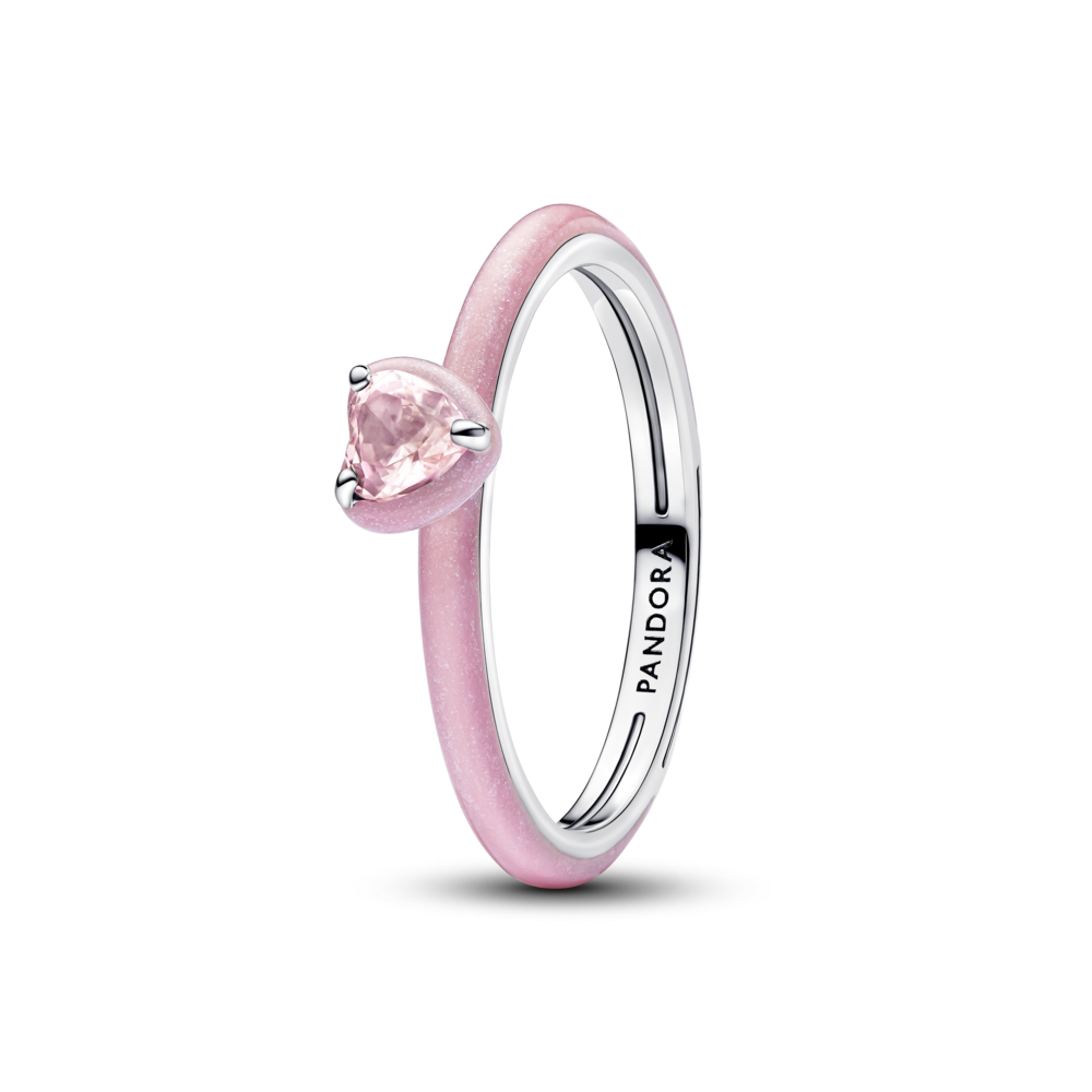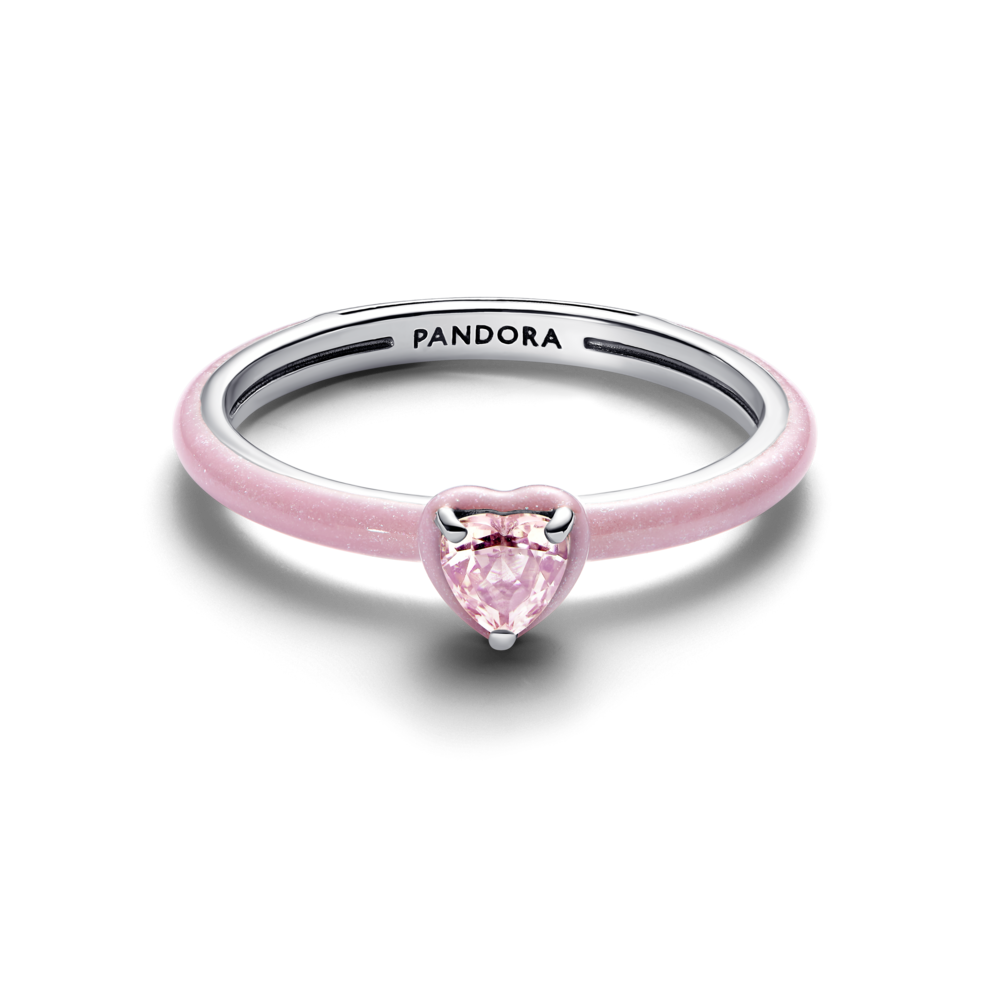 Pense sempre em rosa, com este anel brilhante, inspirado no amor. Em prata, o anel apresenta um cristal rosa em forma de coração com cravação em garra, rodeado por esmalte rosa brilhante. O aro parcialmente esmaltado acrescenta um toque divertido, enquanto o motivo de coração personifica o espírito do amor próprio, tornando-o uma peça perfeita para levar consigo todos os dias.