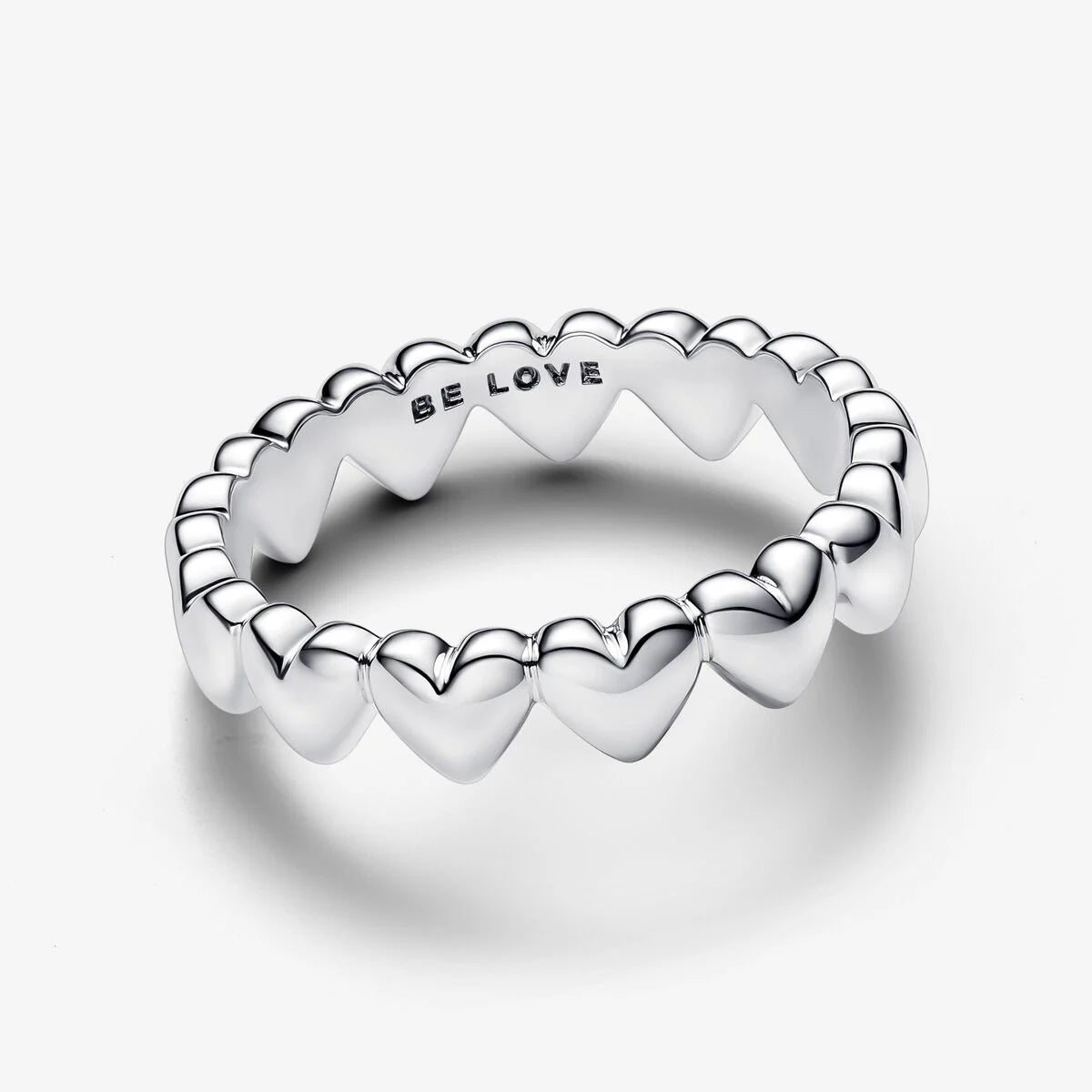Ofereça um presente do coração com este anel em prata 925. Fabricado com minúcia, com uma fila de corações a formar o aro, este design romântico fica igualmente bonito usado sozinho ou conjugado com anéis Pandora contrastantes. Ofereça-o como uma forma repleta de significado de exprimir o seu amor, ou mime-se com uma peça que vai adorar usar vezes sem conta.