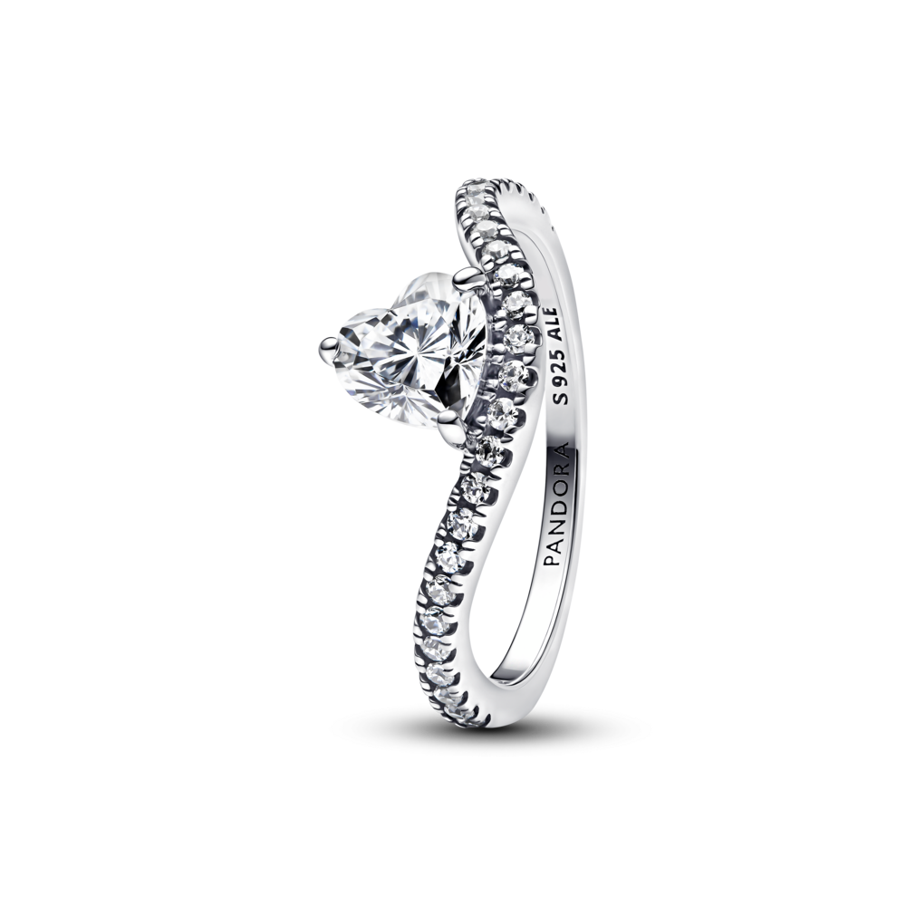 Um aro ondulado combina com uma pedra em forma de coração neste design de anel único. Em prata, apresenta uma zircónia de corte coração com cravação em garra, desviada de um aro pavé cintilante. Uma peça contemporânea com um design elegante e fluido que combina na perfeição com a sua joalharia preferida de prata.