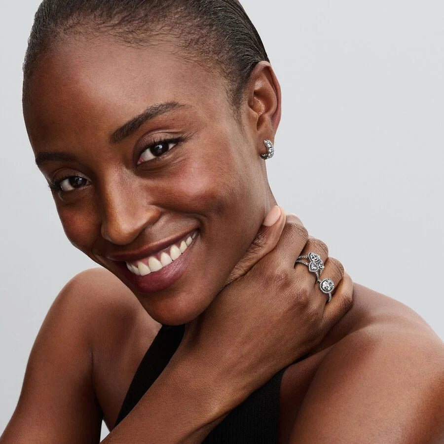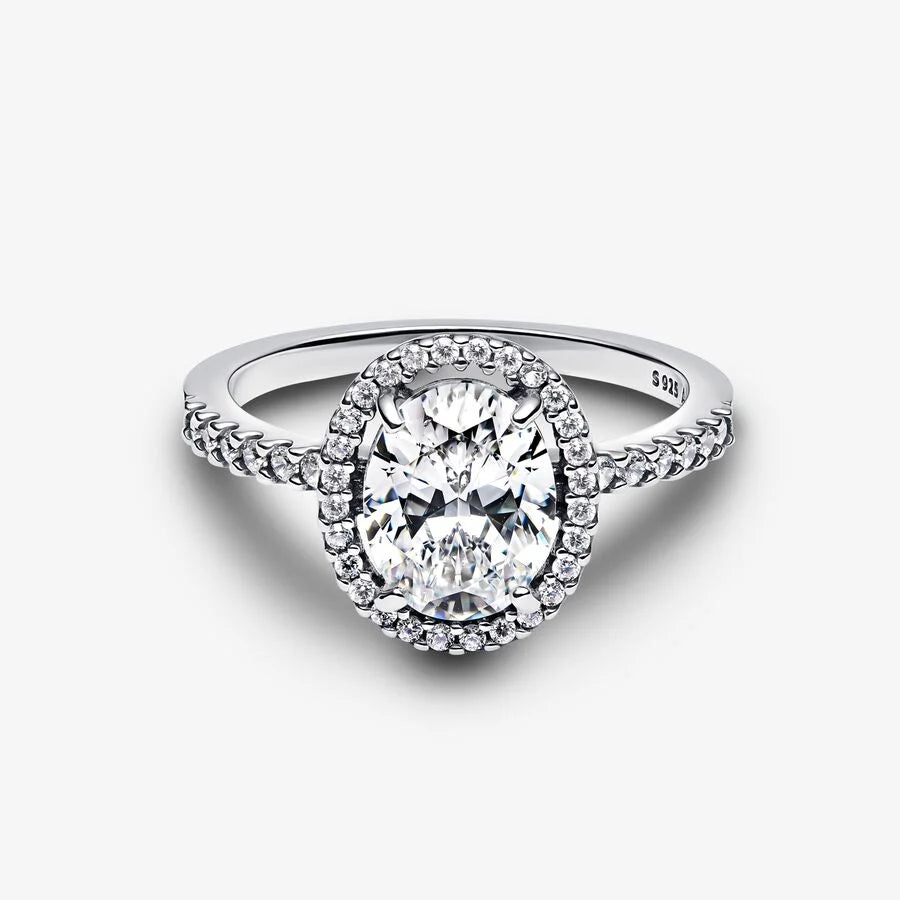Atreva-se com o Anel Statement Auréola Oval Cintilante. Este anel de prata apresenta uma grande pedra oval elevada ao centro, rodeada por uma auréola de pavé, bem como uma fila de pavé no topo. Inspirado nos laços que adora e valoriza, este anel foi concebido para ser conjugado com outros estilos, complementando e acrescentando brilho ao seu look. Combine-o com outros anéis em tons frescos para um efeito monocromático ou jogue com estilos multitonais quando misturar outros metais.