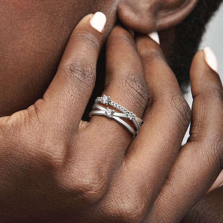 Anel Pandora Sparkling Triple Band - 199400C01 para mulher, em prata de lei com zircónias cúbicas.