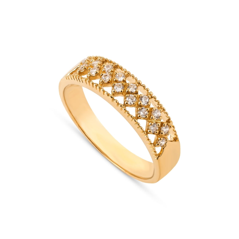 Artigo: Anel Marca: FR Jewels Coleção: Senhora Metal/Toque: Ouro 19.2k, Ouro 9k Pedras: Zircónias Brancas Cor/Metal: Amarelo Peso apx.*: 3.1g(Ouro 19.2k) Descritivo Pedras: Qtd Tipo Peso (ct) Tam. Cor / Qual. 2 Zirconia branca red 1.30mm 14 Zirconia branca red 1.40mm Acabamento:Polido