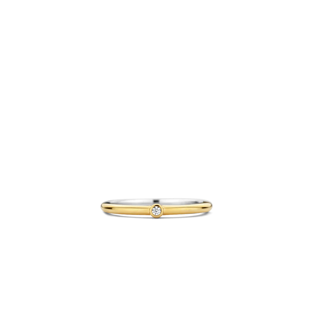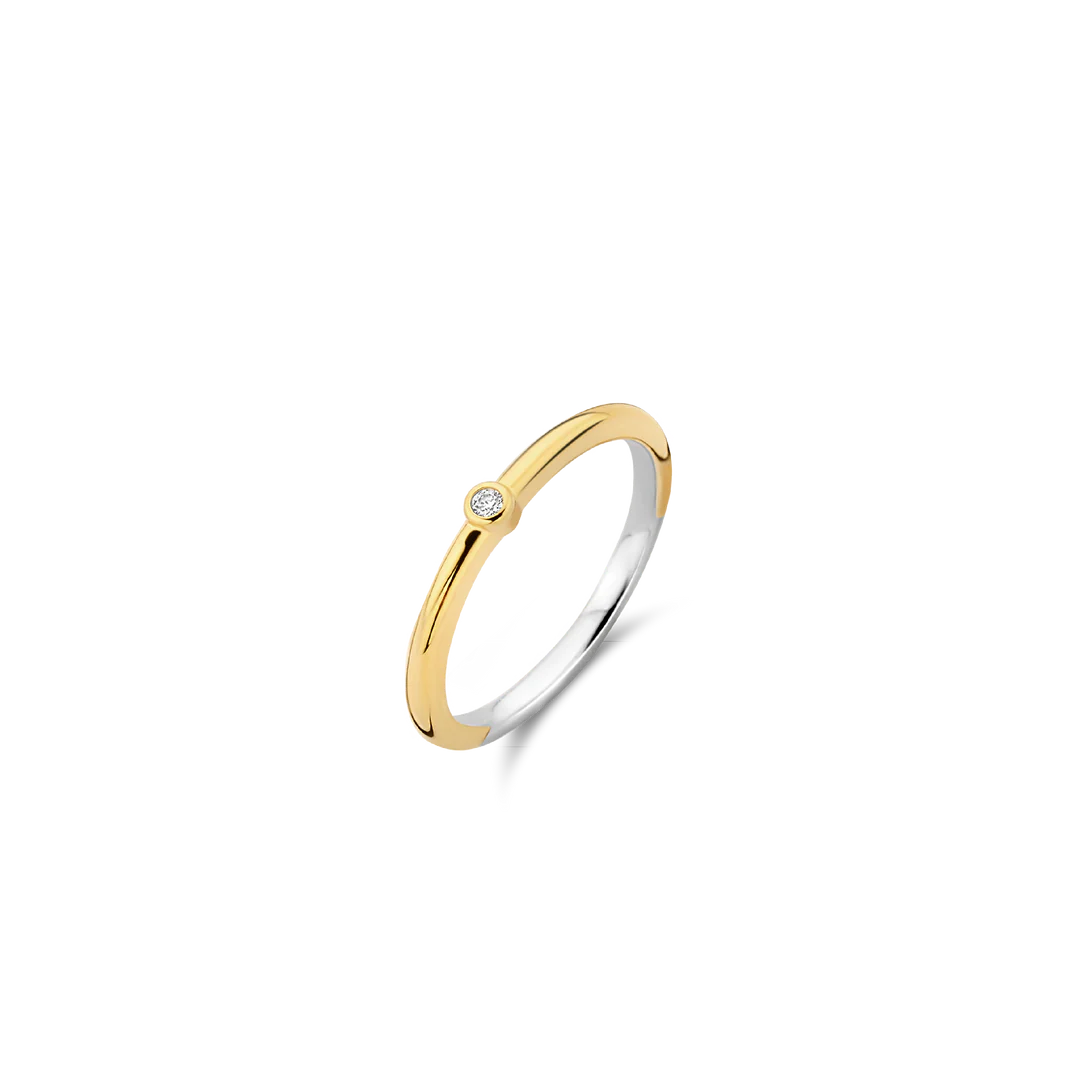 Este anel de prata banhado a ouro TI SENTO 12249ZY ostenta um conjunto de pedras de zircônia cúbica branca em um cenário refinado. O anel é feito de prata esterlina 925.
