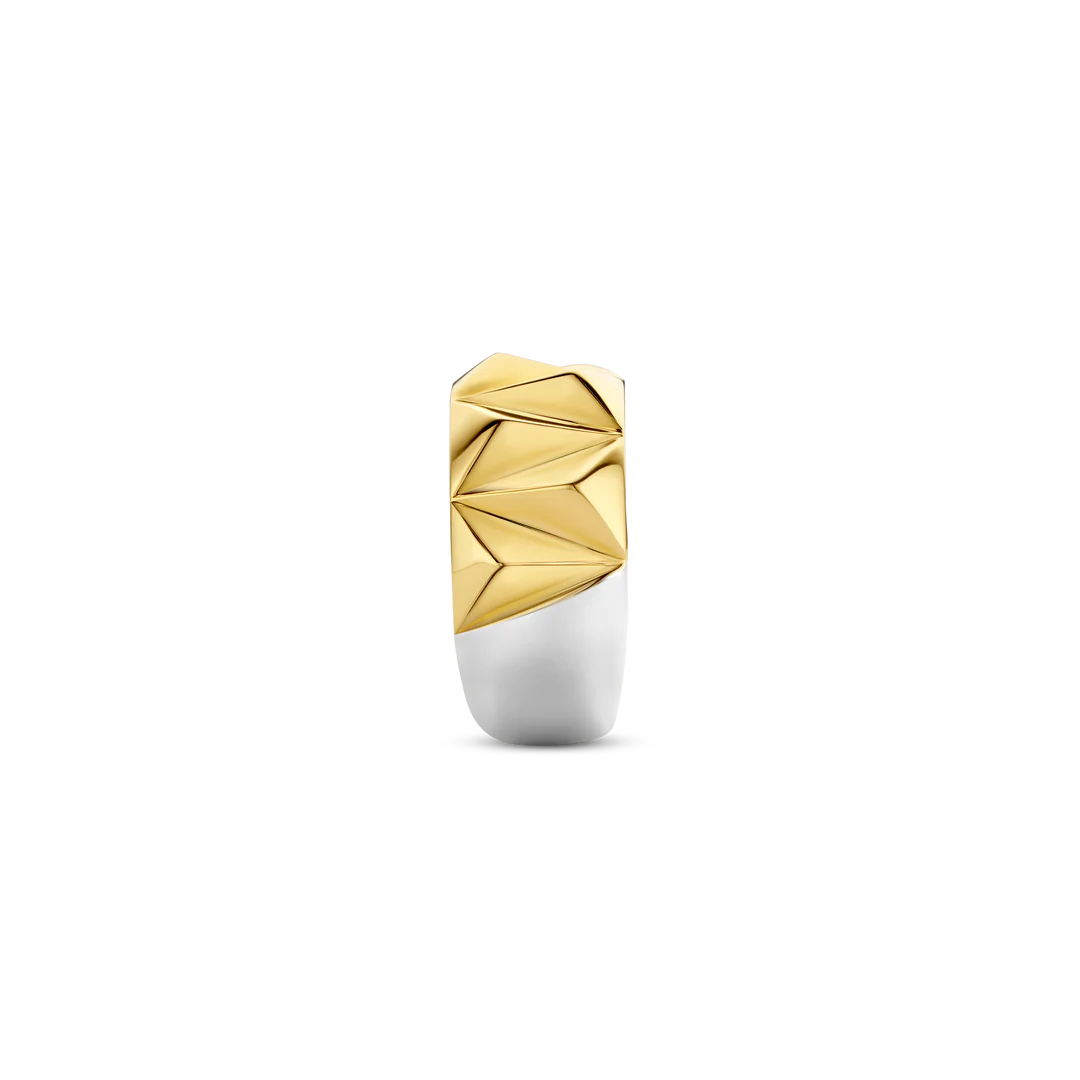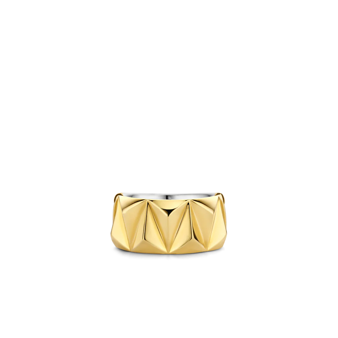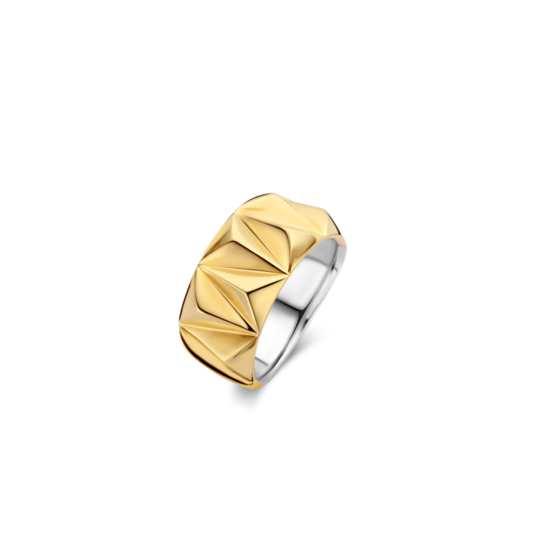 Este anel de prata banhado a ouro TI SENTO 12279SY apresenta uma estrutura de pino sofisticada. O anel é feito de prata esterlina 925 e banhado a ouro amarelo. Esta peça ousada é realmente um chamariz. Use-a sozinha ou empilhe-a com outras, ela não deixará de chamar a atenção.