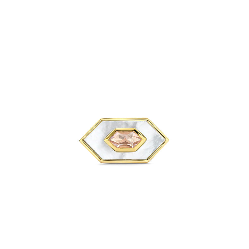 Uma fusão harmoniosa de elegância, beleza natural e design contemporâneo. Este anel opulento é feito de prata de lei 925 da mais alta qualidade e depois banhado a ouro amarelo para um toque opulento e quente. A elegante combinação de madrepérola e pedras rosa nude cria um contraste deslumbrante que eleva qualquer look. Este atrativo foi concebido para fazer uma declaração da forma mais subtil possível. Deixe-o trazer a sua magia para as suas mãos, vai certamente chamar a atenção. Todos os nossos anéis não contêm níquel e são hipoalergénicos.