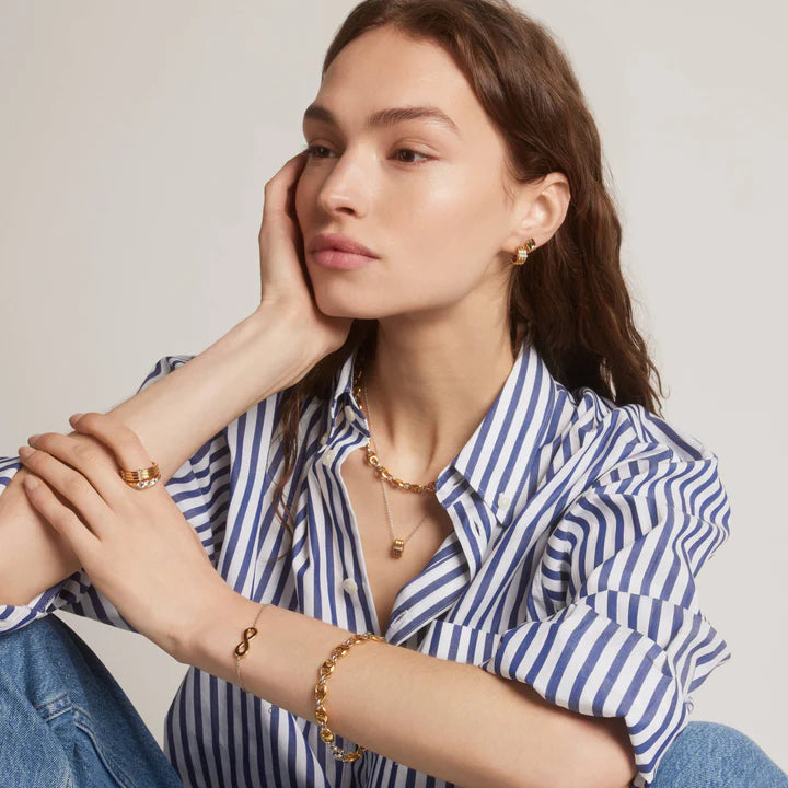 Delicie-se com uma elegância intemporal com este anel TI SENTO em prata banhada a ouro 12344ZY. Fabricado em prata de lei 925 e revestido com um luxuoso ouro amarelo, este anel apresenta um trio de delicadas faixas adornadas com um brilhante pavé de zircónias cúbicas. O brilho quente do ouro acrescenta um toque de opulência, enquanto o design minimalista se inspira na Art Deco, oferecendo um toque moderno a uma estética intemporal. Este anel é mais do que um simples acessório; é um símbolo do fascínio clássico moderno e do luxo sem esforço. Experimente a magia deste encantador anel de afirmação. O seu design é um testemunho da arte da joalharia fina, oferecendo uma mistura única de moderno e clássico. Criado com cuidado para peles sensíveis, este anel sem níquel e hipoalergénico garante um conforto e uma qualidade duradouros.