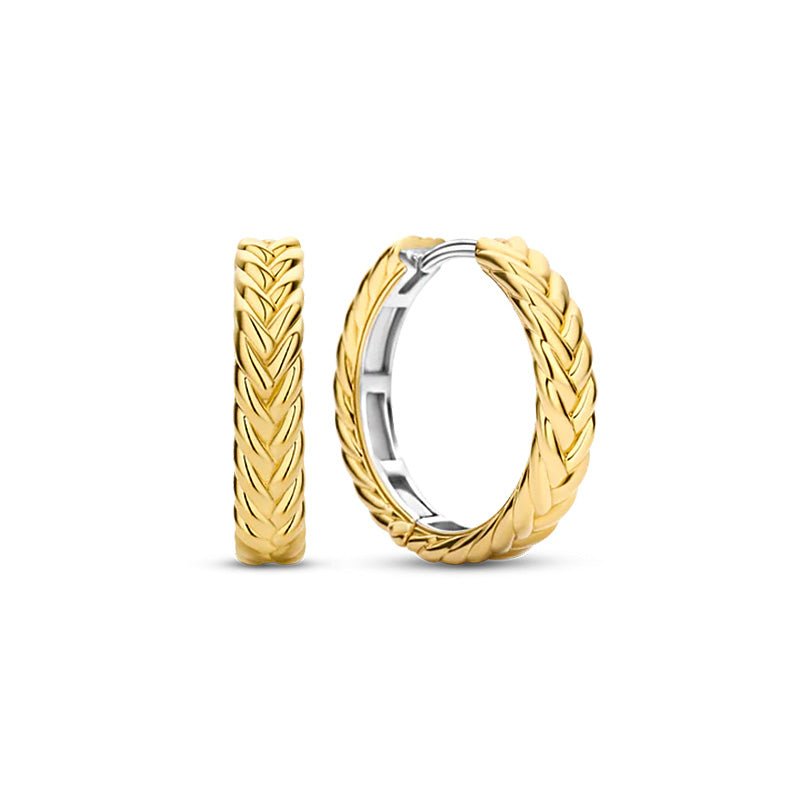 Estas argolas de prata banhadas a ouro TI SENTO 7883SY apresentam um padrão elegante e entrançado. Estes brincos banhados a ouro são feitos de prata de lei 925. Estes clássicos sofisticados e intemporais trarão um ar vintage redescoberto a qualquer look.