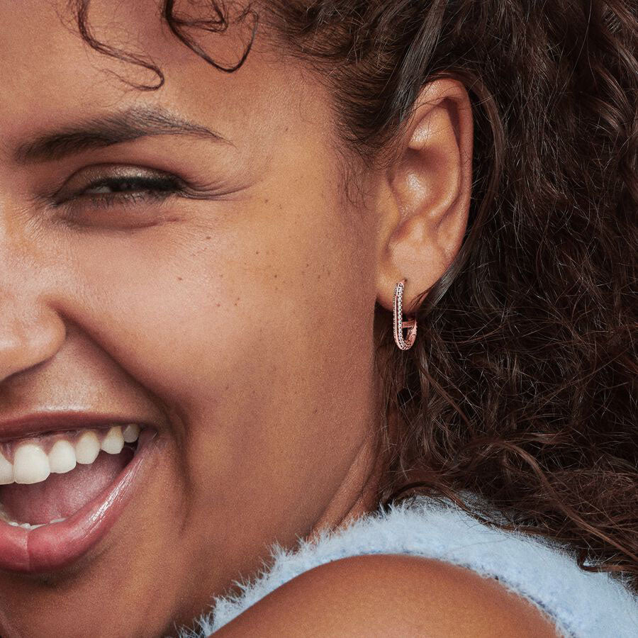 Acrescenta aquilo que adoras à Argola de Elos Pavé Pandora ME e leva a personalização das tuas argolas para outro nível. Esta argola revestida a ouro 14k pode ser reinventada para se adequar ao teu estilo, com filas de zircónias transparentes de corte brilhante e uma barra cruzada horizontal dentro da silhueta rectangular, para que possas abrir o elo em segurança e colocar as tuas contas pendente na parte inferior do brinco. Enche a tua argola com até três mini contas pendente ou uma conta medalhão, um elo de abrir ou um conector de abrir, para criares inúmeros estilos.