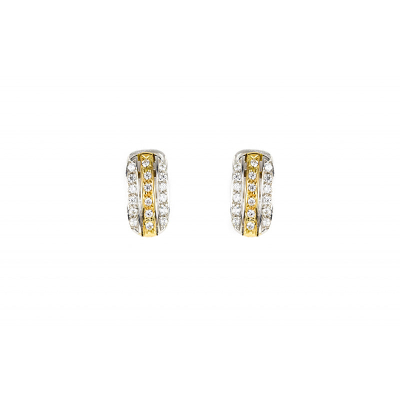 Artigo: Brinco Marca: FR Jewels Metal/Toque: Ouro 19.2k, Ouro 9k Pedras: Zircónias Brancas Cor/Metal: Amarelo&Branco Peso apx.*: 4.2g(Ouro 19.2k) Descritivo Pedras: Qtd Tipo Peso (ct) Tam. Cor / Qual. 36 Zircónia Branca Red. 1.30mm * Valores indicativos. Sujeito a variação produção (+/- 5%)