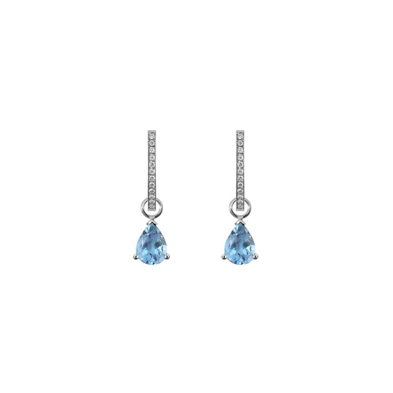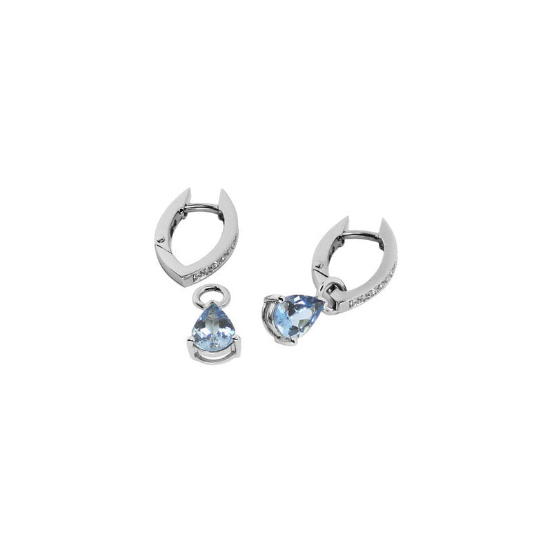 Brincos Moments: Brincos em ouro branco 19.2K com 24 diamantes lapidação brilhante com 0.16 ct. 2 águas-marinhas com 1.05 ct. Diamantes: Cor G- Pureza VVS. Referência: BI2546G Peso: 3.5 g Comprimento dos brincos: 24 mm.