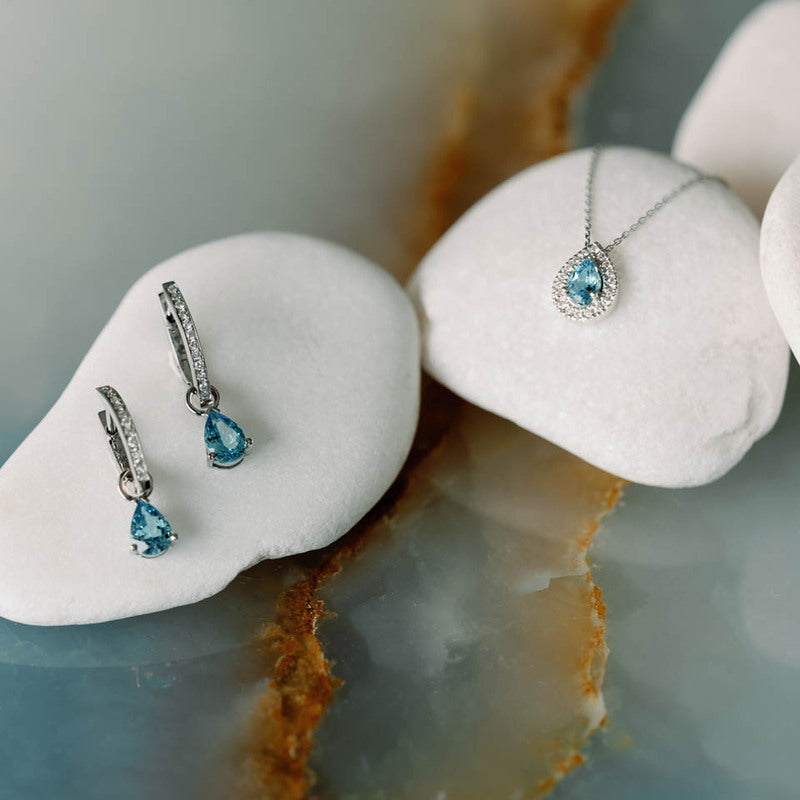 Brincos Monseo Water Drop Ouro Águas-Marinhas