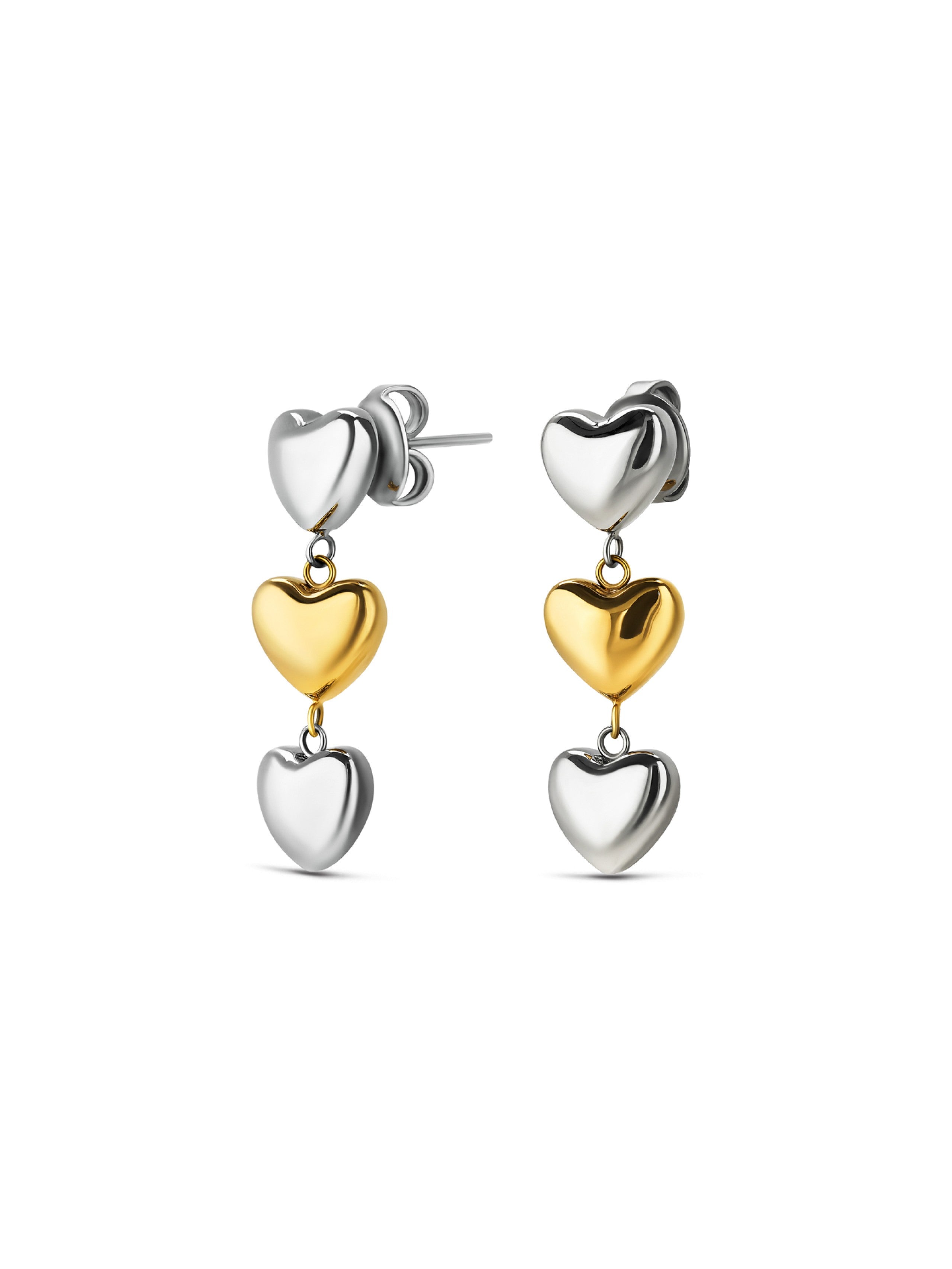 Os brincos Crazy Heart prestam homenagem ao elemento mais romântico, os corações. Um tributo ao amor e à paixão que nos faz sonhar. Com um design simples e elegante, cada peça foi cuidadosamente elaborada para capturar a essência do amor. Os brincos são compostos por duas partes: uma parte superior dourada em formato de coração, ligadas entre si por pequenos elos prateados que os fazem ganhar algum dinamismo conforme o movimento de quem as usa e de onde fica pendurado um coração prateado num tamanho superior. Os brincos são de espigão e têm um fecho em borboleta para maior conforto durante a sua utilização.