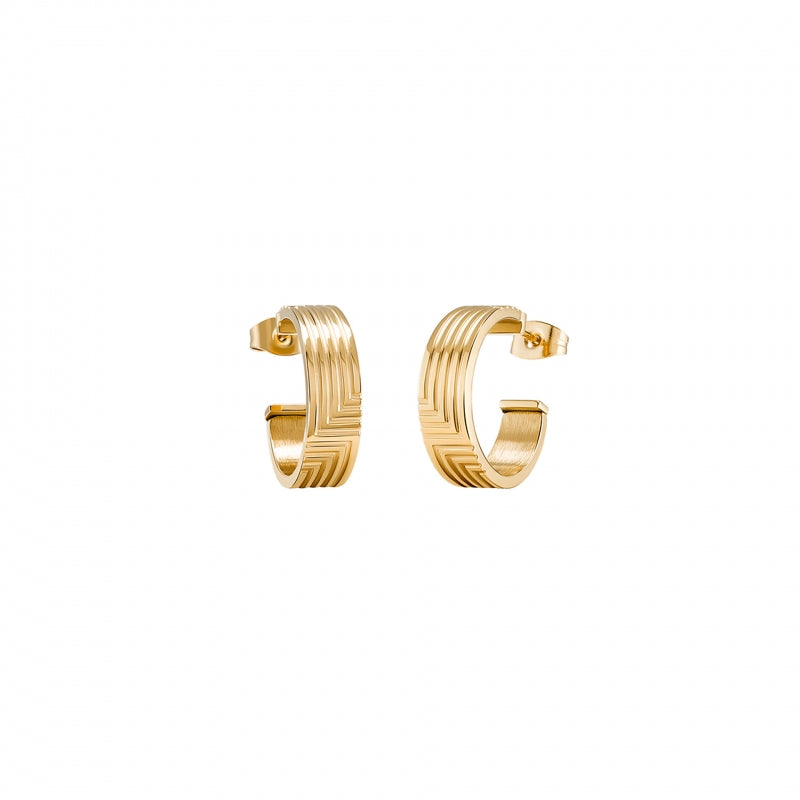 As argolas da coleção Paths em dourado com um padrão texturado com efeito labiríntico é uma peça elegante inspirada na mitologia grega, que simbolizam a sorte e atraem energias positivas, já a textura da peça reflete o caminho que é a vida. Esta coleção trata-se de verdadeiros amuletos da sorte, capaz de a proteger com as melhores energias e que nunca mais vai querer tirar, independentemente do caminho traçado.