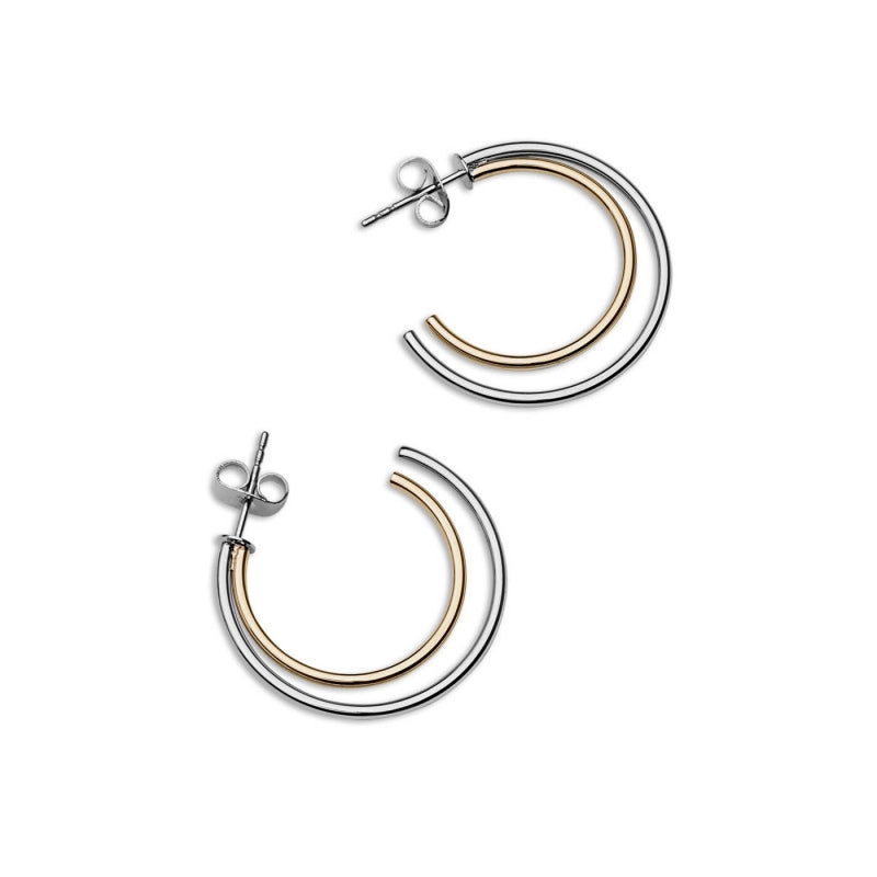 As argolas bicolor da coleção Soul celebra a elegância e o charme, unificadas pelo conceito da alma, da autenticidade e identidade. Uma elegante coleção de joalharia prateada e dourada com um design marcadamente arquitetónico: tiras de aço finas que se interligam para construirem peças de joalharia originais.