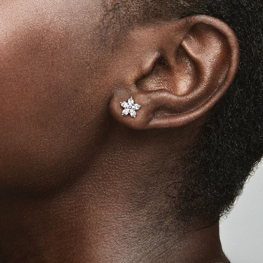 Prepare-se para a quadra festiva com estes Brincos Sparkling Snowflake . Com acabamento manual em prata, estes brincos são inspirados na magia do Inverno. Cada brinco apresenta pedras transparentes cravadas em forma de estrela, numa formação de floco de neve, com micro-esferas ao centro. Use estes brincos floco de neve com a sua pulseira Pandora Moments decorada com as suas contas preferidas sob o tema do Inverno, para mostrar o quanto adora esta estação.