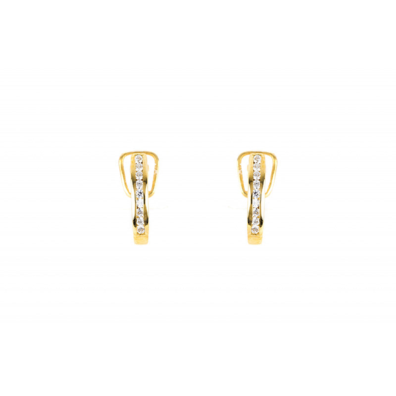 Artigo: Brinco Marca: FR Jewels Metal/Toque: Ouro 19.2k, Ouro 9k Pedras: Zircónias Brancas Cor/Metal: Amarelo Peso apx.*: 3.3g(Ouro 19.2k) Descritivo Pedras: Qtd Tipo Peso (ct) Tam. Cor / Qual. 18 Zircónia Branca Red. 1.50mm * Valores indicativos. Sujeito a variação produção (+/- 5%)