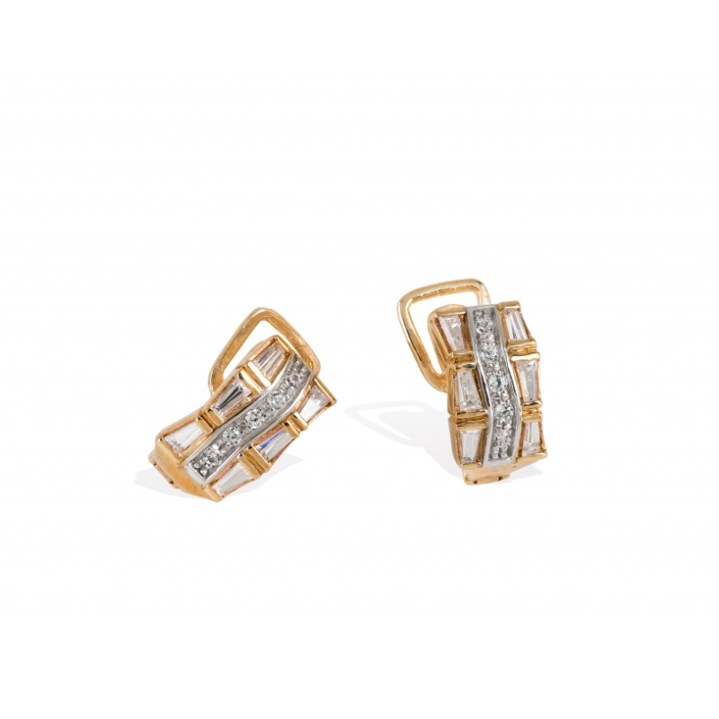 Artigo:Brinco Marca:FR Jewels Colecção:Senhora Metal/Toque:Ouro 19.2k, Ouro 9k Pedras:Zircónias Brancas Cor/Metal:Amarelo&Branco Peso apx.*:3.8g(Ouro 19.2k) Descritivo Pedras: Qtd Tipo Peso (ct) Tam. Cor / Qual. 12 Zirconia branca trap 3x2mm 10 Zirconia branca red 1.30mm Acabamento:Polido * Valores indicativos. Sujeito a variação produção (+/- 5%)
