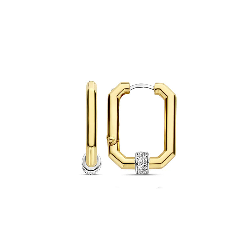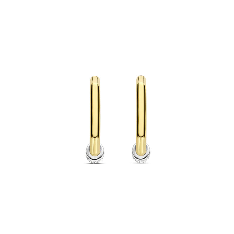 Fabricados em prata de lei 925 da mais alta qualidade, são banhados a ouro amarelo. Apresentam um detalhe de pavé refinado de pedras brancas de zircónia cúbica (CZ). Prenda o cabelo, dê-lhes destaque e misture-os com outras argolas ou tachas para criar a sua própria Ear Party exclusiva. Estes brincos são totalmente isentos de níquel e hipoalergénicos.