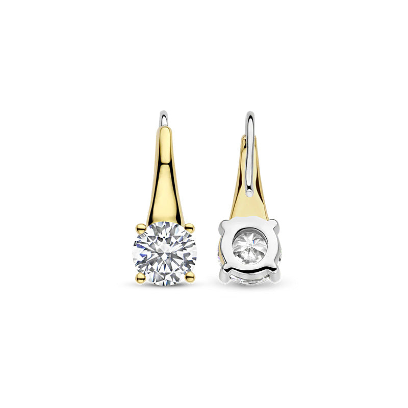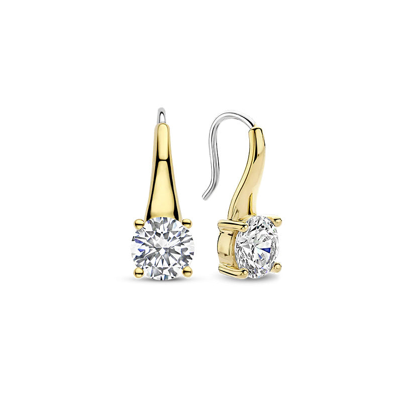 As brilhantes pedras de zircónia são habilmente cortadas para refletir a luz de todos os ângulos. As definições dos pinos garantem que as pedras permanecem seguras no lugar, permitindo a máxima penetração da luz e criando um brilho hipnotizante. Estes brincos cativantes são feitos de prata de lei 925 da mais alta qualidade e banhados a ouro amarelo para um toque opulento e quente. Irradie magia dourada com estes clássicos intemporais. Misture-os ou use-os como tesouros independentes, realçarão até o aspeto mais simples. Todos os nossos brincos não contêm níquel e são hipoalergénicos.