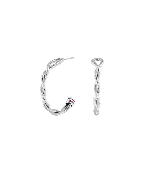 As jóias Tommy Hilfiger são fabricadas com os melhores materiais. Estas jóias são feitas de aço inoxidável prateado, com uma forma caraterística de anel torcido e pequenos detalhes que tornam o acabamento muito mais original.