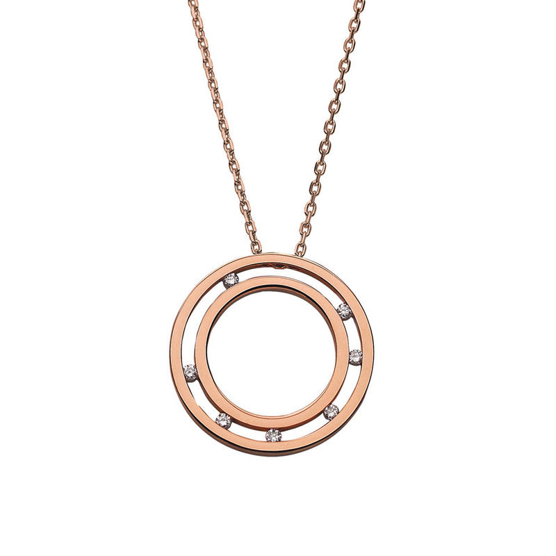 Colar Moments: Colar em ouro rosa 19.2K com 7 diamantes lapidação brilhante com 0.12 ct. Diamantes: Cor G- Pureza VVS. Referência: CO2278A Peso: 5.7 g Colar com fio ouro 19.2 K, comprimento: 450 mm ajustável a 420 mm. Diâmetro do centro do colar: 21 mm.