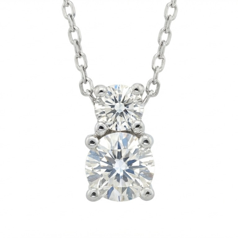 Colar em ouro branco 19,2k, adornado com 2 diamantes em talhe brilhante cor G e pureza VS1. Peso: 1,6g