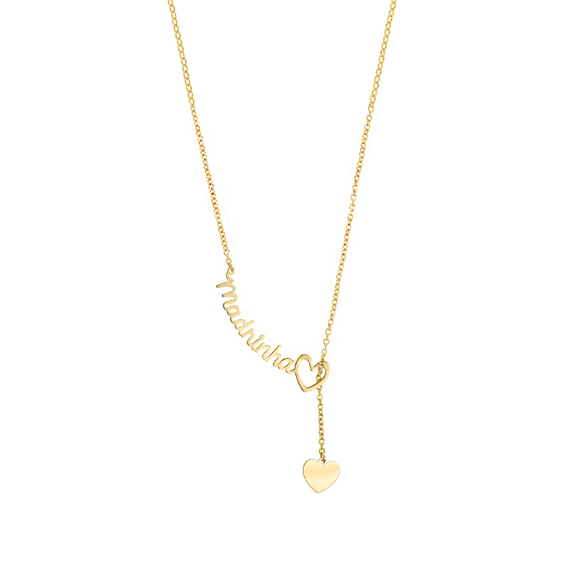 Colar Madrinha com coração pendente em prata de lei, banho de ouro. Joia perfeita para oferecer à madrinha durante a Páscoa como um amuleto de carinho e devoção. Surpreenda a sua Madrinha com esta joia!