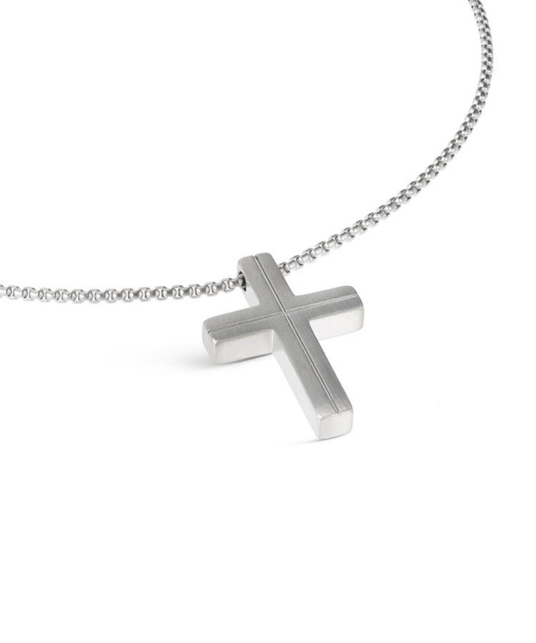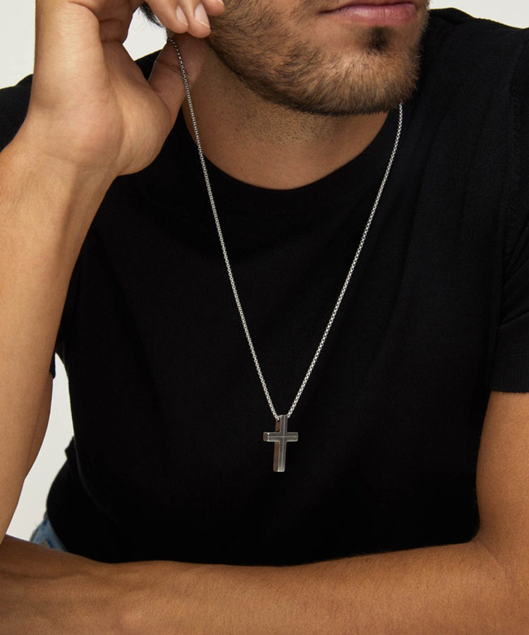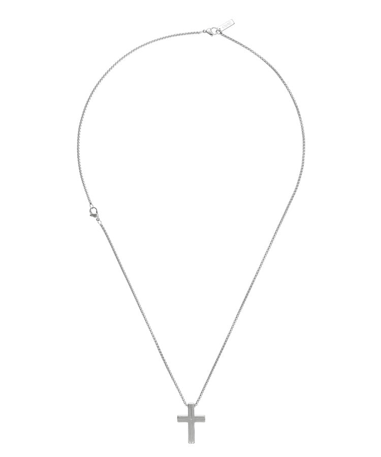 O colar One Men Crossed apresenta um estilo mais particular, perfeito para aqueles que desejam adicionar um toque de simbolismo ao seu visual. Este colar possui uma fina malha veneziana prateada composta por elos quadrados entrelaçados, proporcionando uma estrutura sólida e distinta com destaque para o pendente na forma de cruz. O pendente de cruz prateada adiciona um elemento de fé e crença ao colar, sendo uma escolha versátil que pode ser usado diariamente ou em ocasiões especiais conseguindo ainda transformar-se num colar mais curto e numa pulseira.