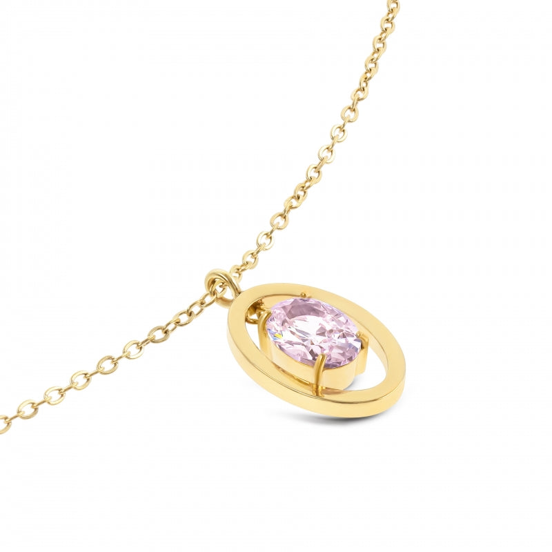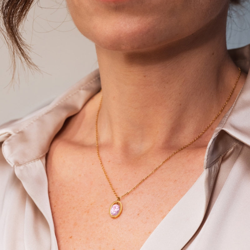 O colar Junho - Harmonia da coleção Birthstones é uma peça delicada e carregada de simbolismo. É composto por uma malha de elos dourada muito fina e discreta e por um pendente oval cujo design dá a ilusão que o cristal zircónia rosa claro está a flutuar dentro de uma moldura. Esta coleção limitada de colares foi criada para assinalar e celebrar os 20 anos da One, enaltecendo os desejos e intenções que desejamos a todos.