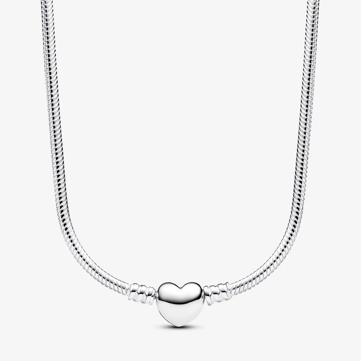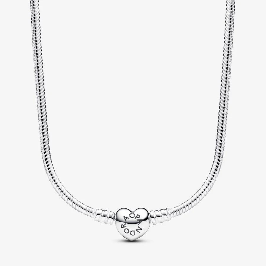 A nossa conta clássica em forma de coração encontra-se com a nossa icónica malha snake para criar o Colar Malha Snake Fecho Coração Pandora Moments - num tributo total à Pandora. Este colar de malha snake pode conter todos os tamanhos do Pendente "O" Pandora ou do Pendente "O" Coração, e não apresenta roscas (divisores de contas elevados). Conjugue este colar de prata com as suas contas preferidas para um look totalmente carregado, ou use-o sozinho como uma peça marcante perfeitamente simples.