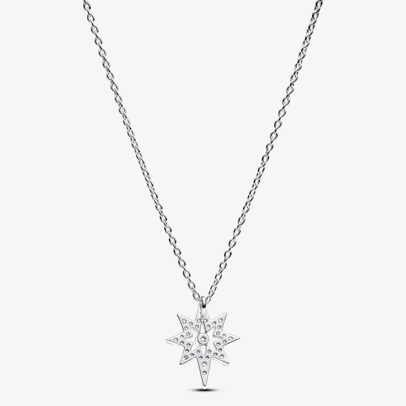 Ilumine o seu look com o nosso Colar Pendente Estrela do Norte em prata. Apresentando o design simbólico da Polaris a brilhar com zircónias transparentes numa corrente clássica, este colar acrescenta um brilho celestial ao seu look, com uma camada de simbolismo repleto de significado. A corrente pode ser ajustada em três comprimentos diferentes para se adequar ao seu estilo. Servindo como uma bússola em tempos de incerteza, a Estrela do Norte guia-nos para um amanhã mais brilhante, representando a nossa esperança e os nossos sonhos. Use-a para acrescentar brilho a qualquer look festivo ou ofereça-a à estrela brilhante da sua vida.