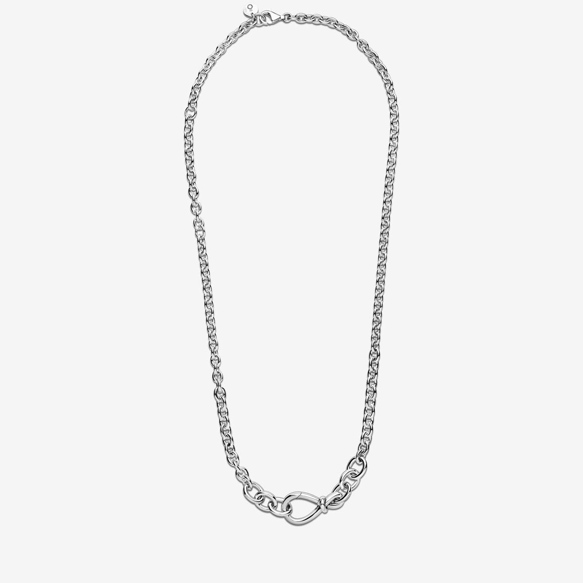 É o dobro do amor com a interpretação única da Pandora do símbolo do infinito. O nó icónico é envolvido à volta do centro moldado assimetricamente, para simbolizar a força da ligação. Este colar de prata com o nó do infinito é uma representação clássica de um laço inquebrável, apresentando um fecho de abrir que pode conjugar com até duas contas ou pendentes Pandora Moments.
