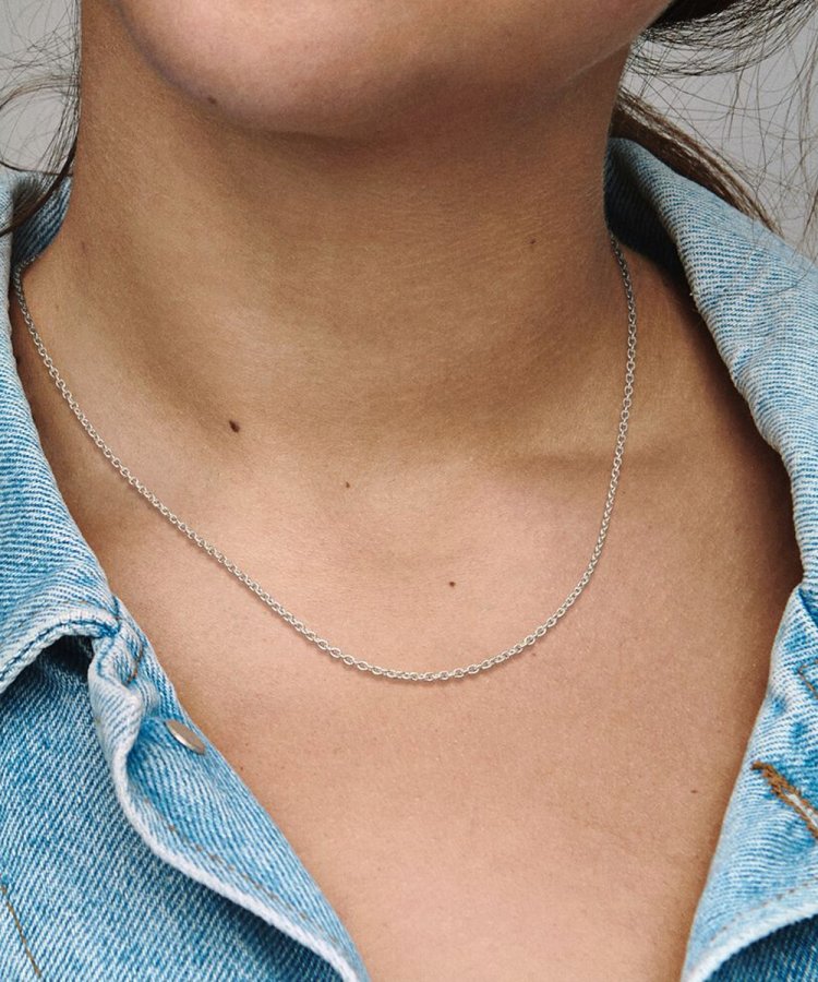 Crie um look unicamente seu, com esta corrente clássica como ponto de partida. O colar versátil é produzido em prata 925, um dos nossos três metais assinatura. É minuciosamente detalhado com uma etiqueta com o logótipo Pandora e um fecho mosquetão. Quer pretenda um estilo simples ou marcante, ou jogar com texturas e tamanhos, é uma forma fácil de actualizar o seu decote. Adicione a sua colecção de pendentes ou contas e ajuste-a para um de três comprimentos, para um tamanho perfeito.
