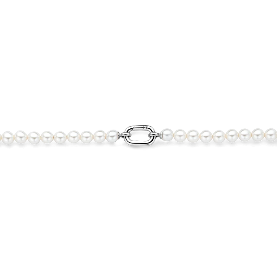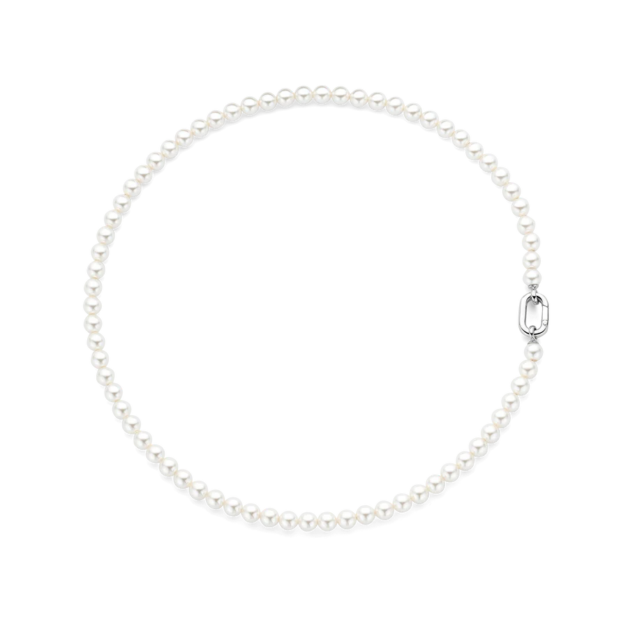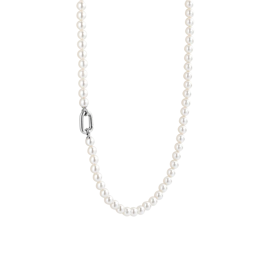 Celebre a elegância intemporal com este colar TI SENTO em prata de lei 925. O design apresenta uma linha fluida de pérolas de alto brilho, selecionadas pela sua superfície perfeita e luminosidade suave. O fecho icónico em prata com acabamento platinado acrescenta um toque contemporâneo a um fio de inspiração clássica. A harmonia entre o prateado polido e o tom cremoso das pérolas cria uma elegância natural e discreta — ideal para quem aprecia joias minimalistas e refinadas.