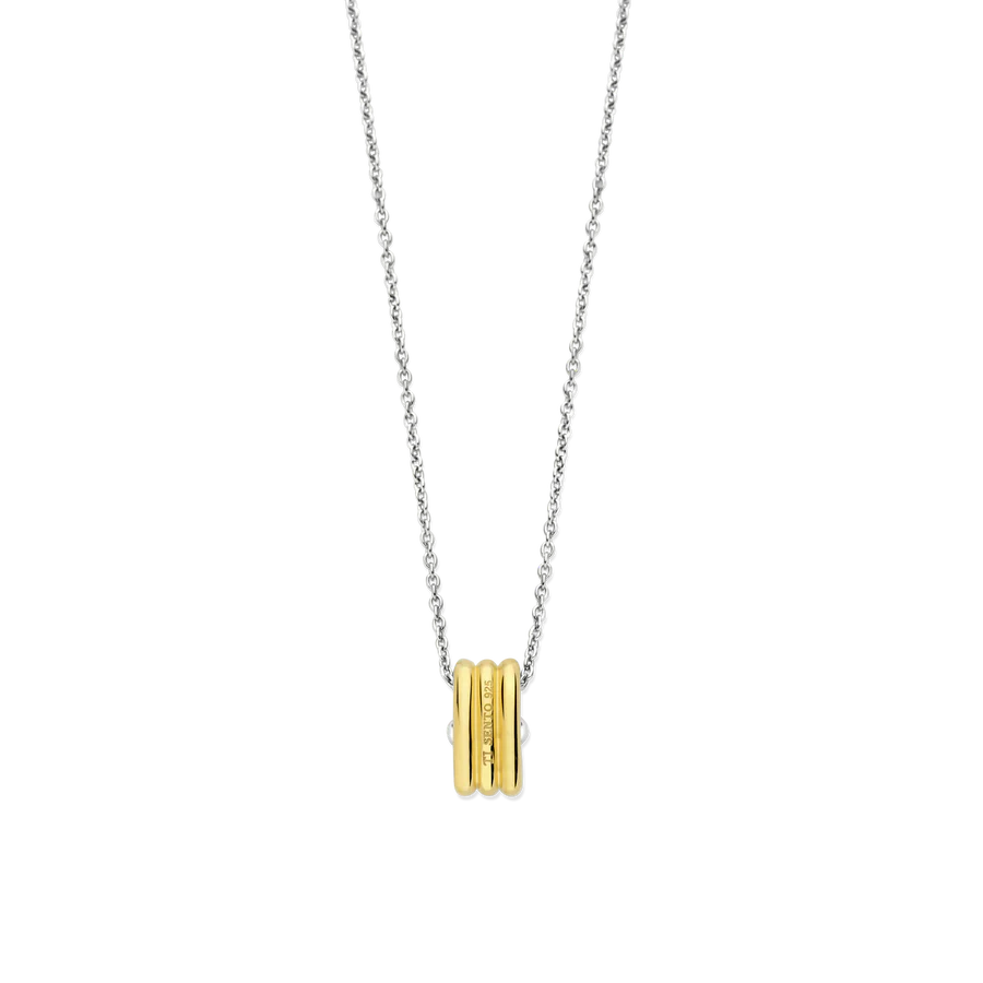 Delicie-se com a elegância intemporal com este colar TI SENTO 34057ZY/42 banhado a ouro em prata, um design cativante que celebra a beleza duradoura do estilo Art Déco. Feito em prata de lei 925 e banhado com luxuoso ouro amarelo, este colar apresenta um trio de anéis delicados graciosamente abraçados por um brilhante pavé de zircónias cúbicas. Mesclando moda e arte com um toque de estilo moderno, acrescenta um toque de opulência a qualquer look. Três é um número mágico neste design, simbolizando harmonia e integridade. O colar traz um equilíbrio perfeito ao seu conjunto.