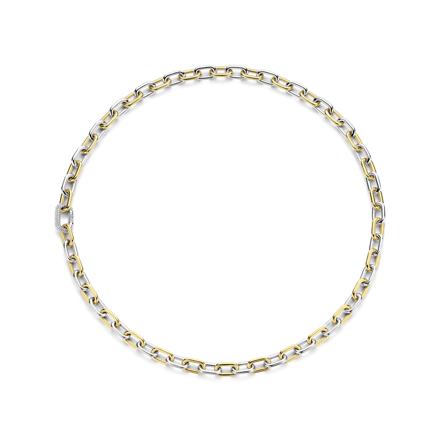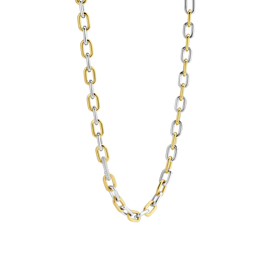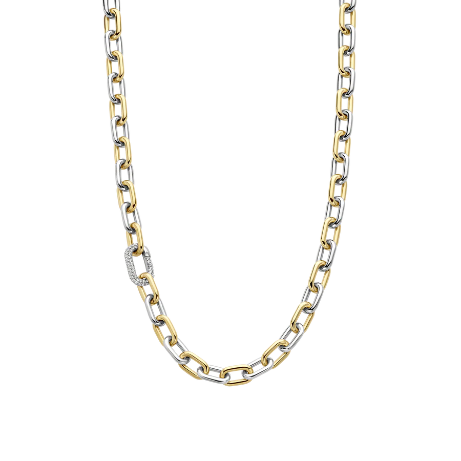 Delicie-se com a cativante interação de texturas e metais com este colar de elos de corrente em prata banhada a ouro TI SENTO 34065ZY/48. Feito em prata de lei 925 e banhado a platina para um brilho duradouro, este colar ousado apresenta uma série de elos grossos alternados em prata e ouro amarelo. Este colar é uma obra de arte usável, uma prova da beleza e versatilidade do design moderno de joias. Os detalhes complexos e as texturas contrastantes criam uma interação cativante de luz e sombra. Aumente o seu look do dia a dia com esta peça marcante.