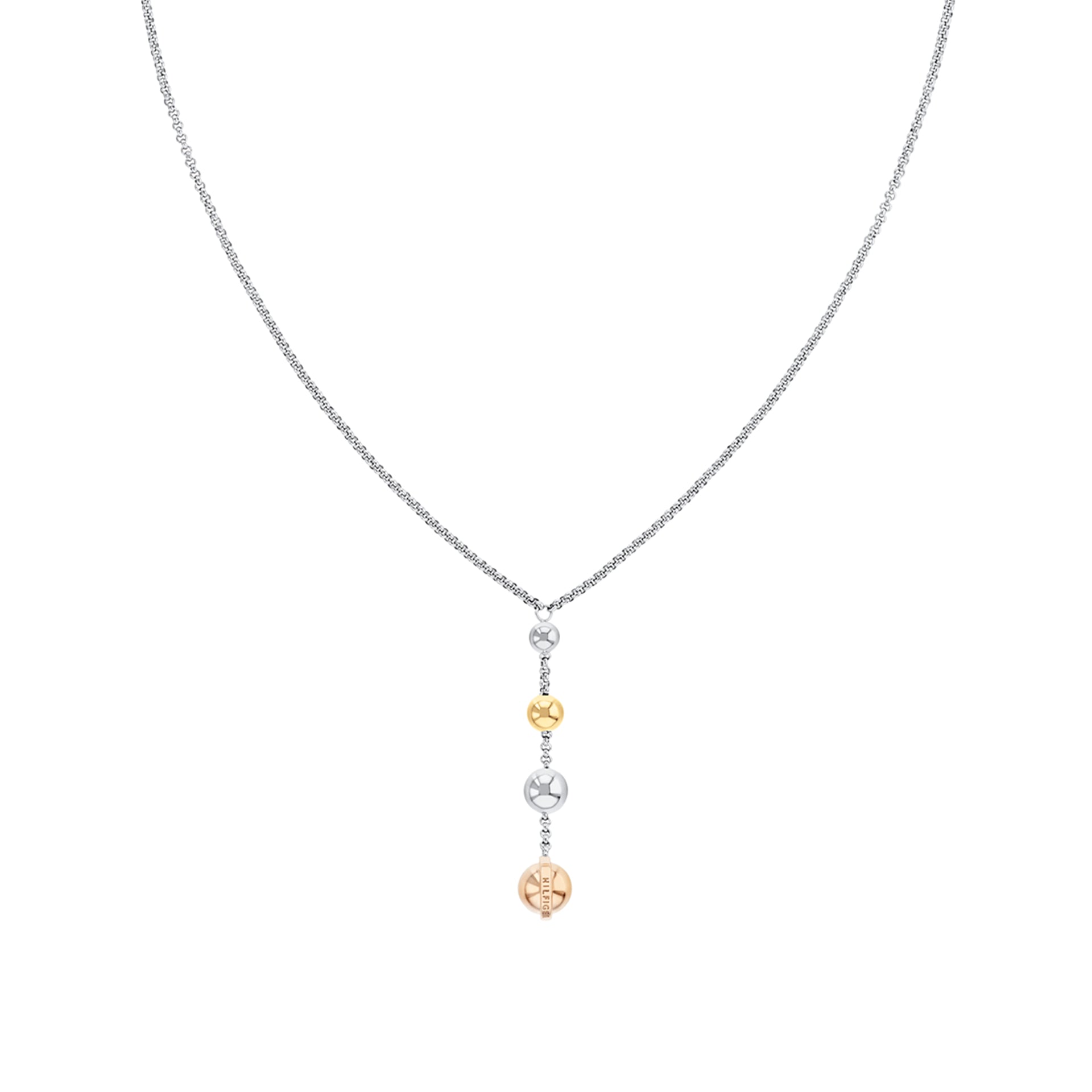 Descubra este colar Tommy Hilfiger em aço da com esferas para senhora. Este modelo em prateado de comprimento ajustável é elegante e versátil, o acessório perfeito para complementar o seu look.