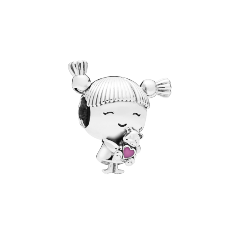 Acrescente uma recordação da sua filha, irmã, sobrinha ou prima com esta conta. A conta é detalhada com tranças e um sorriso amoroso. Uma menina adorável tem nos braços um ursinho que, por sua vez, segura num coração de esmalte rosa. Combine-a com outras contas familiares na sua pulseira ou bangle preferida Pandora Moments ou como pendente num colar.