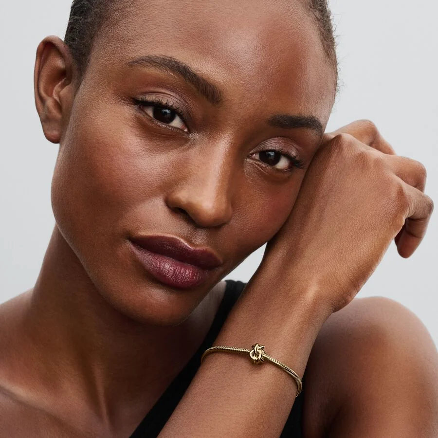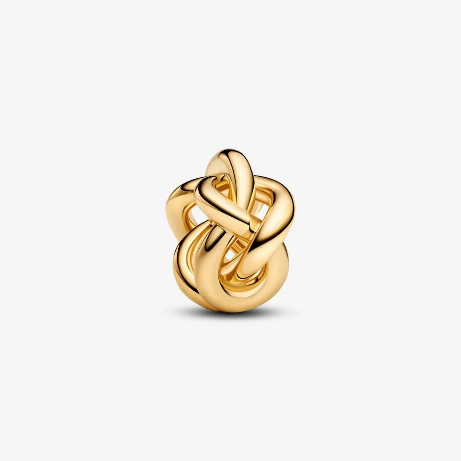 Acrescente um símbolo de eternidade à sua coleção com a Conta Nó Infinito. Esta conta com revestimento em ouro de 14k tem a forma de um nó infinito, representando a união, a resiliência e a força para suportar as muitas voltas da vida. Para além de acrescentar um toque tridimensional e arquitetónico a qualquer look, esta conta recorda a nossa capacidade infinita de nos adaptarmos e recuperarmos de qualquer desafio - tão forte como um nó infinito.