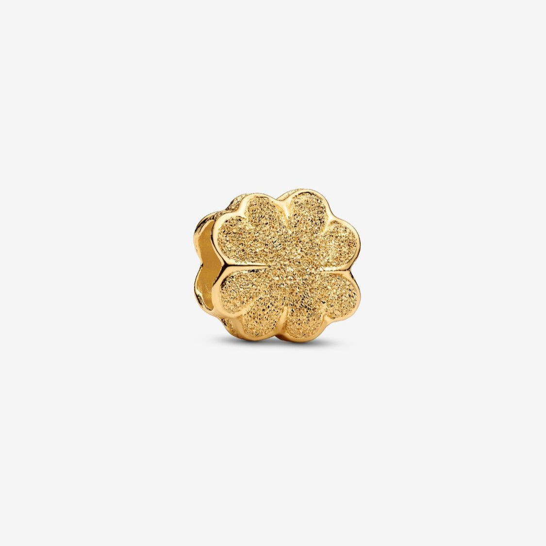 Encontre a sorte nas pequenas coisas com a nossa mini conta trevo com revestimento de ouro 14k. A sua textura de ponta de diamante acrescenta uma riqueza de pormenores — uma recordação dourada para acreditar em si mesma e dar as boas-vindas à sorte