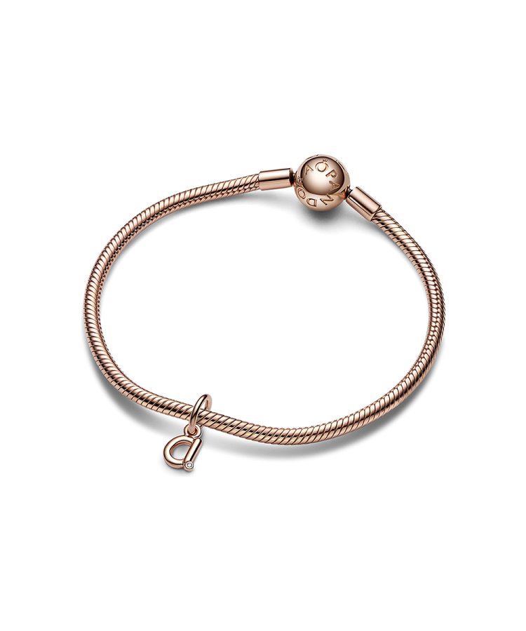 Conta Pendente Pandora Alfabeto Letra A - 782531C01 para mulher, com banho de ouro rosa de 14 quilates e uma zircónia.