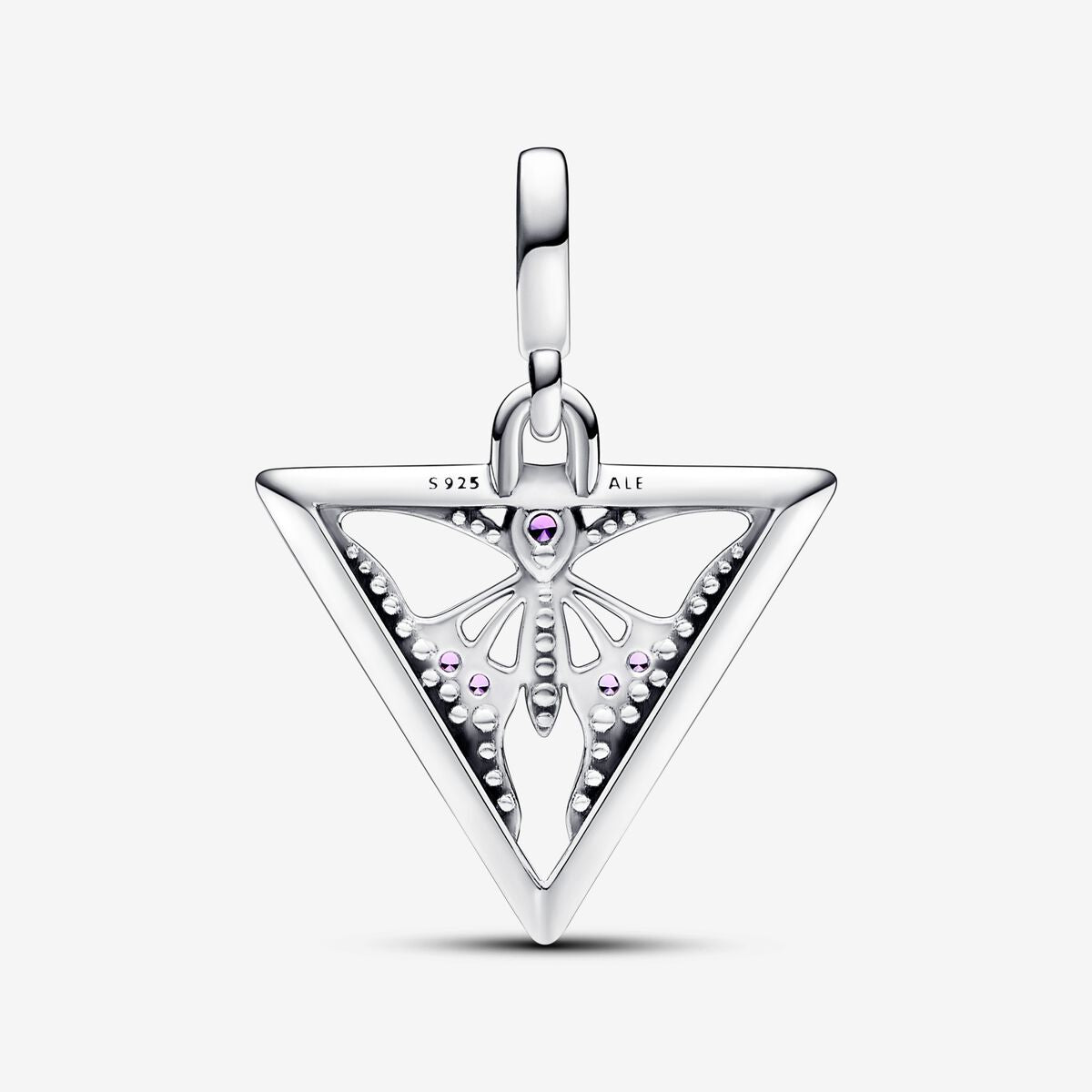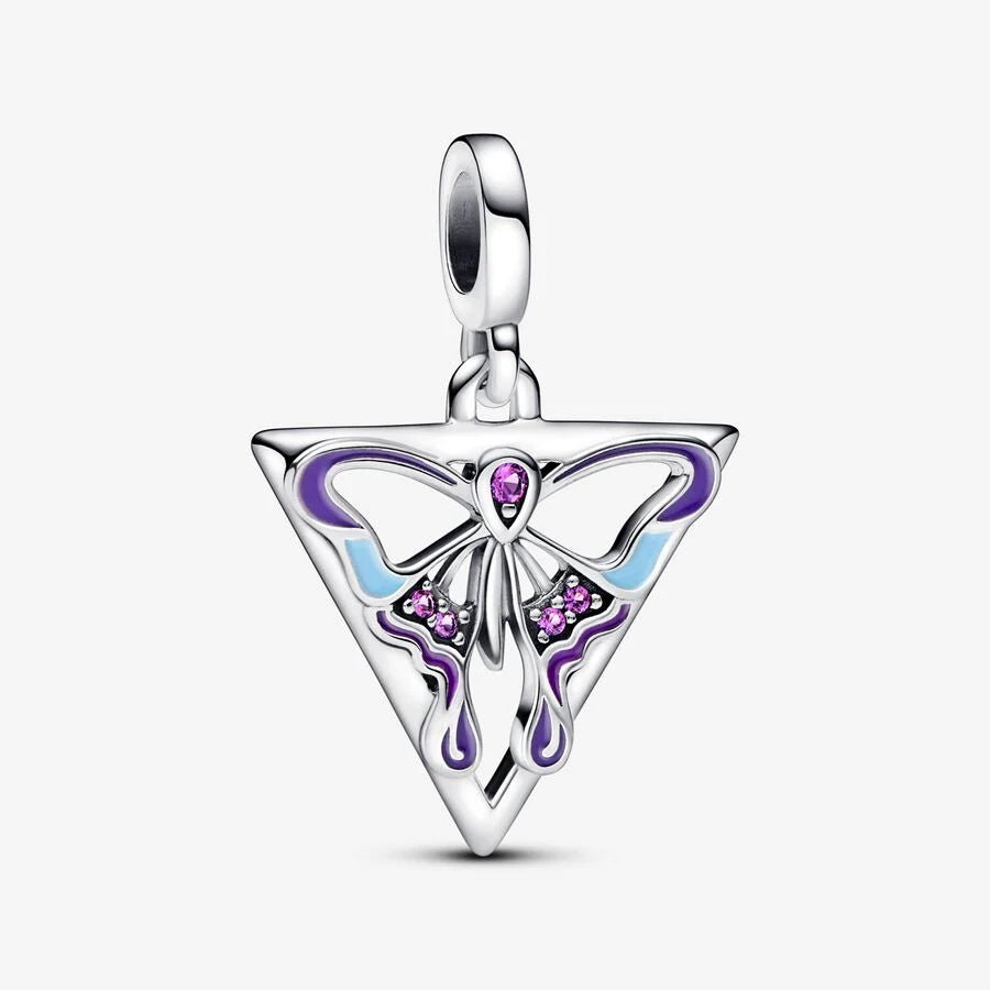 A nossa Conta Medalhão Borboleta Pandora ME acrescentará um símbolo de liberdade ao teu estilo. A borboleta é um símbolo de transformação, feminilidade, beleza e cor. Com os seus cristais man-made lilás pálido e pormenores em esmalte azul, este medalhão de prata apresenta a borboleta dentro do contorno de um triângulo, para que possas acrescentar um formato completamente novo aos teus looks do dia-a-dia.