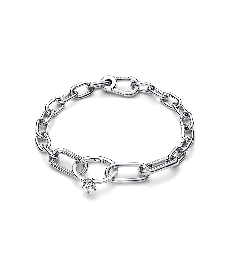 Compromete-te com a pessoa mais importante da tua vida - tu - com o Double Link Pandora ME Marry Me. Com acabamento manual e mensagem gravada Self love , este elo de styling duplo de prata apresenta um elo rectangular arredondado ligado a um pequeno anel solitário. Conjuga o teu elo entre conectores nas tuas pulseiras ou colares com corrente de elos Pandora ME, ou usa-o num par de argolas para uma afirmação única.